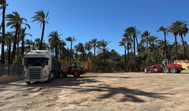 Los trabajos consisten en el desbroce, la nivelación y la compactación del terreno, además de la colocación de zahorra artificial para mejorar la accesibilidad y la seguridad, especialmente por su proximidad al palmeral.