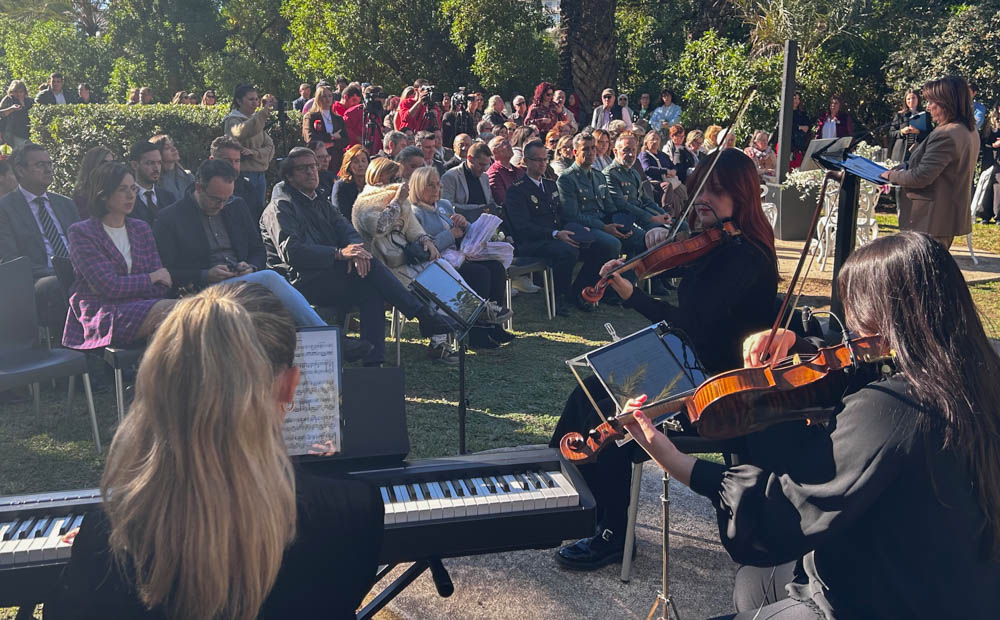 A.S./J.M. 25N, Día Internacional de la Eliminación de la Violencia contra la Mujer. El Ayuntamiento de Elche ha organizado un acto institucional en el Hort del Xocolater en homenaje a las víctimas y como demostración del rechazo de la sociedad a esta lacra.