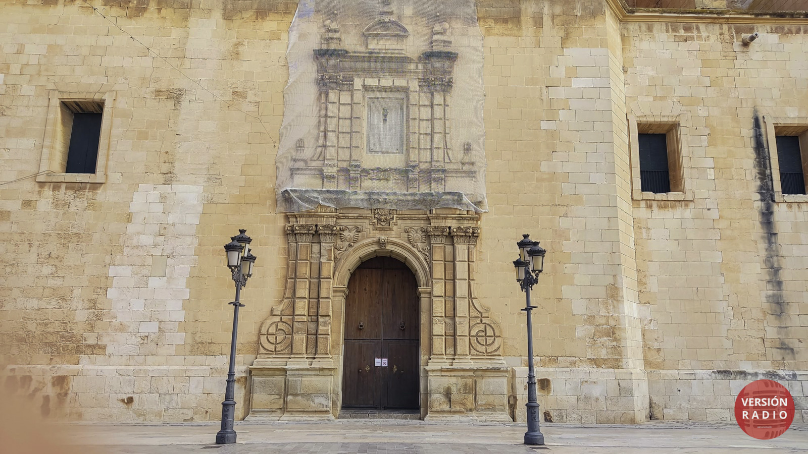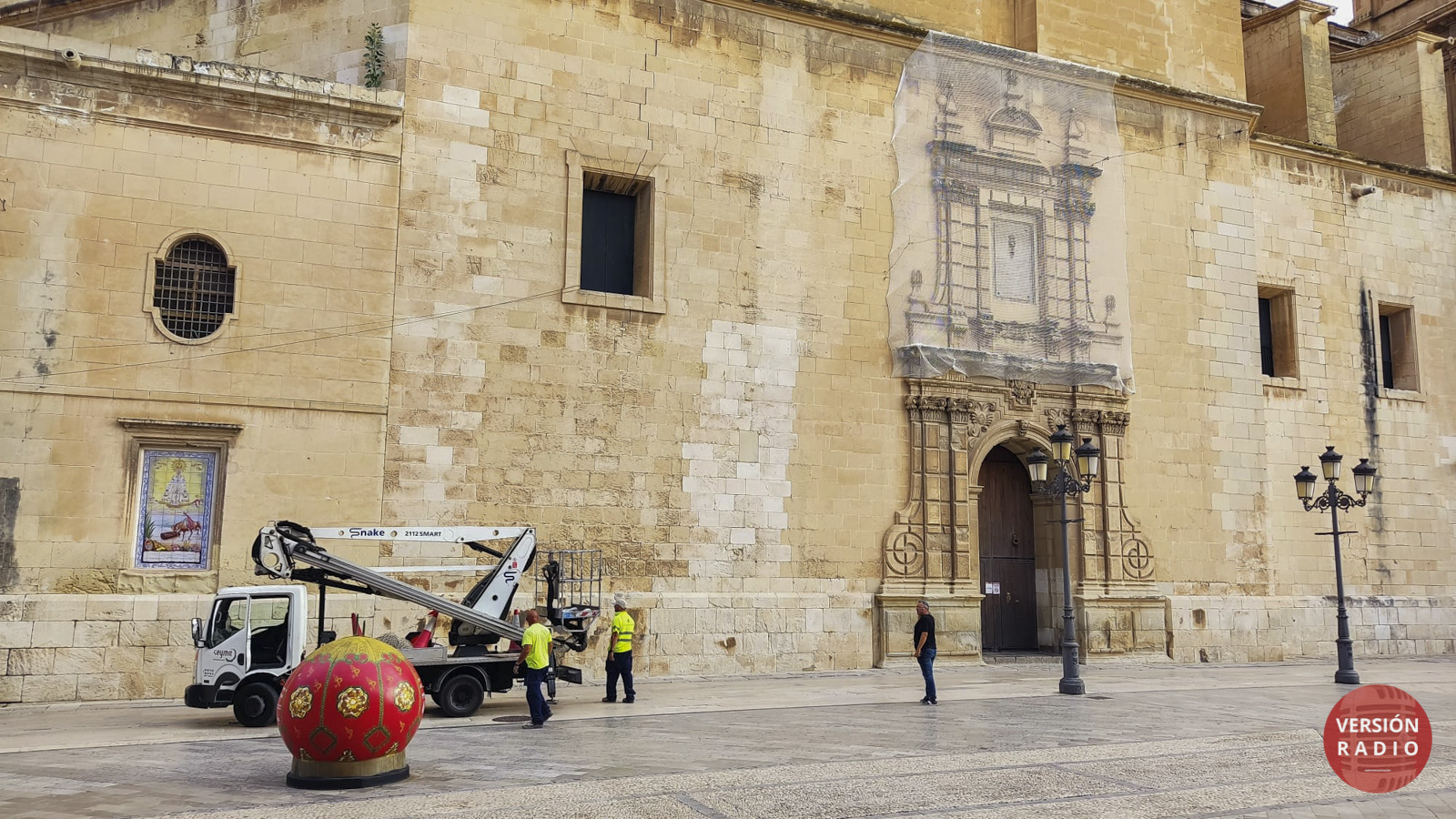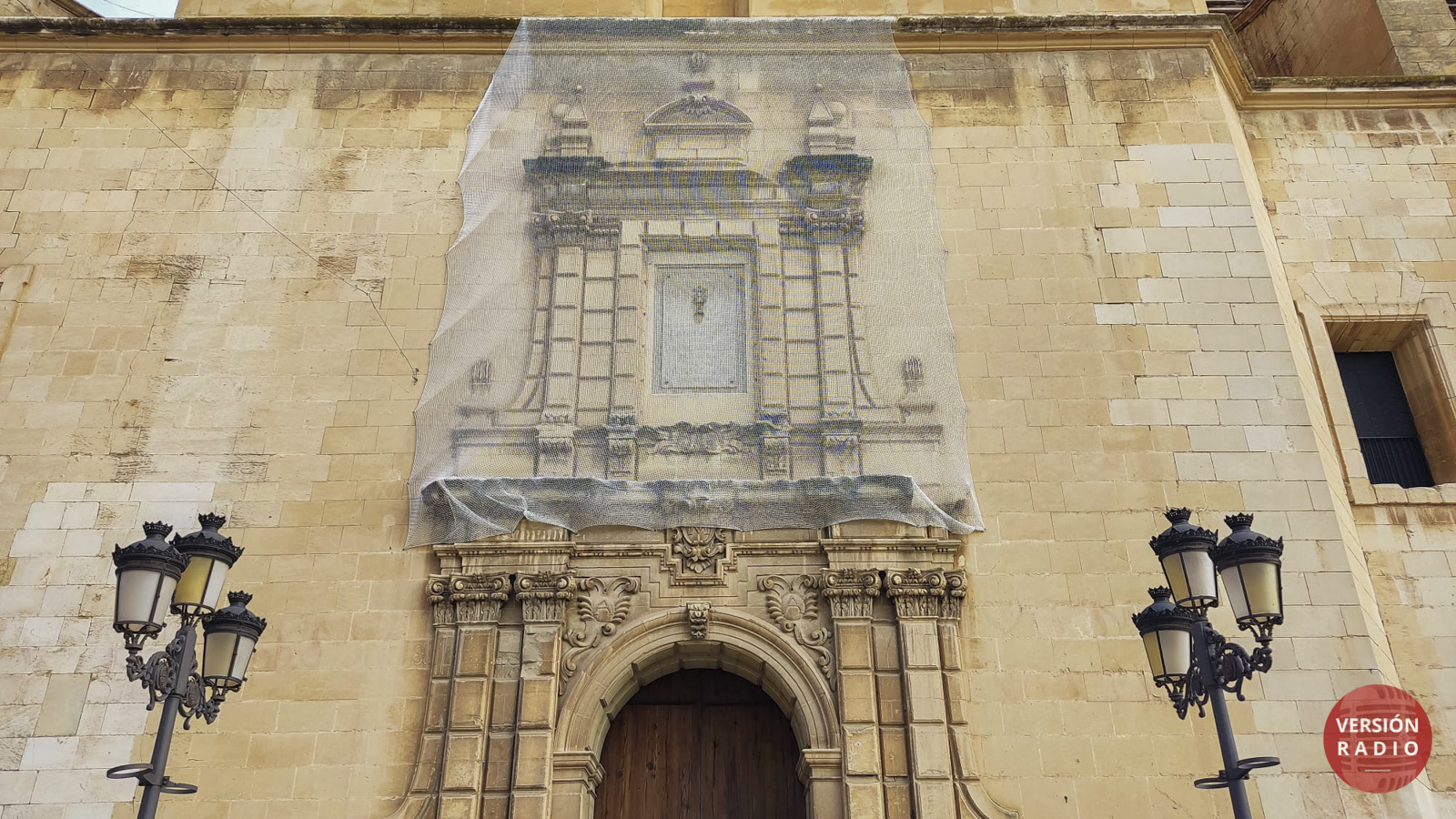 A lo largo del día de hoy se ha cambiado la red de protección que hay en la fachada de la Basílica de Santa María.