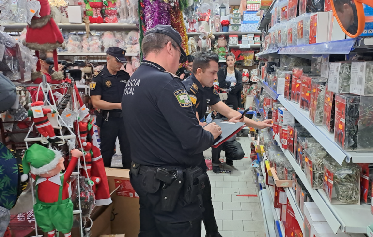 El inspector de la Unidad de Actividades y Establecimientos de la Policía Local, José Antonio Corrales, ha señalado que en los últimos días se han realizado una treintena de inspecciones, principalmente en tiendas multiprecio, que reciben gran cantidad de productos estos días. Ha dicho que se hace «hincapié en productos luminosos o eléctricos como enchufes, regletas, cables, guirnaldas para el belén o el árbol que pueden provocar incendios o choques eléctricos, juguetes o prendas de fantasía como pelucas”.