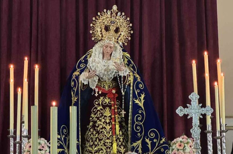 La imagen de esta dolorosa ilicitana, muy querida en el barrio del Raval y en el conjunto de la Semana Santa de Elche, ha presidido el altar mayor de la parroquia de San Juan Bautista entronizada temporalmente en este importante lugar de culto de la iglesia.