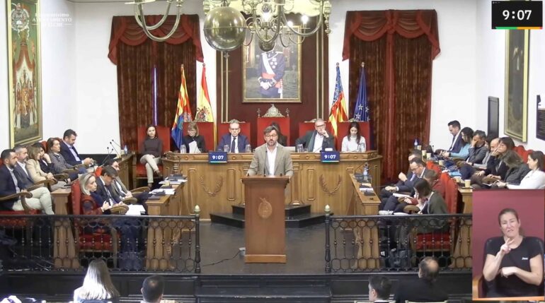 La primera en intervenir hoy ha sido la portavoz de Compromís, Esther Díez, que ha hablado, entre otras cosas, de la licencia de la casa del alcalde, del ciberataque, del Hospital del Vinalopó o de defender lo público. Ha reprochado al alcalde que lleve “a lo público su religiosidad” y dice que hace cosas que ni “Mercedes Alonso llegó a tanto”.