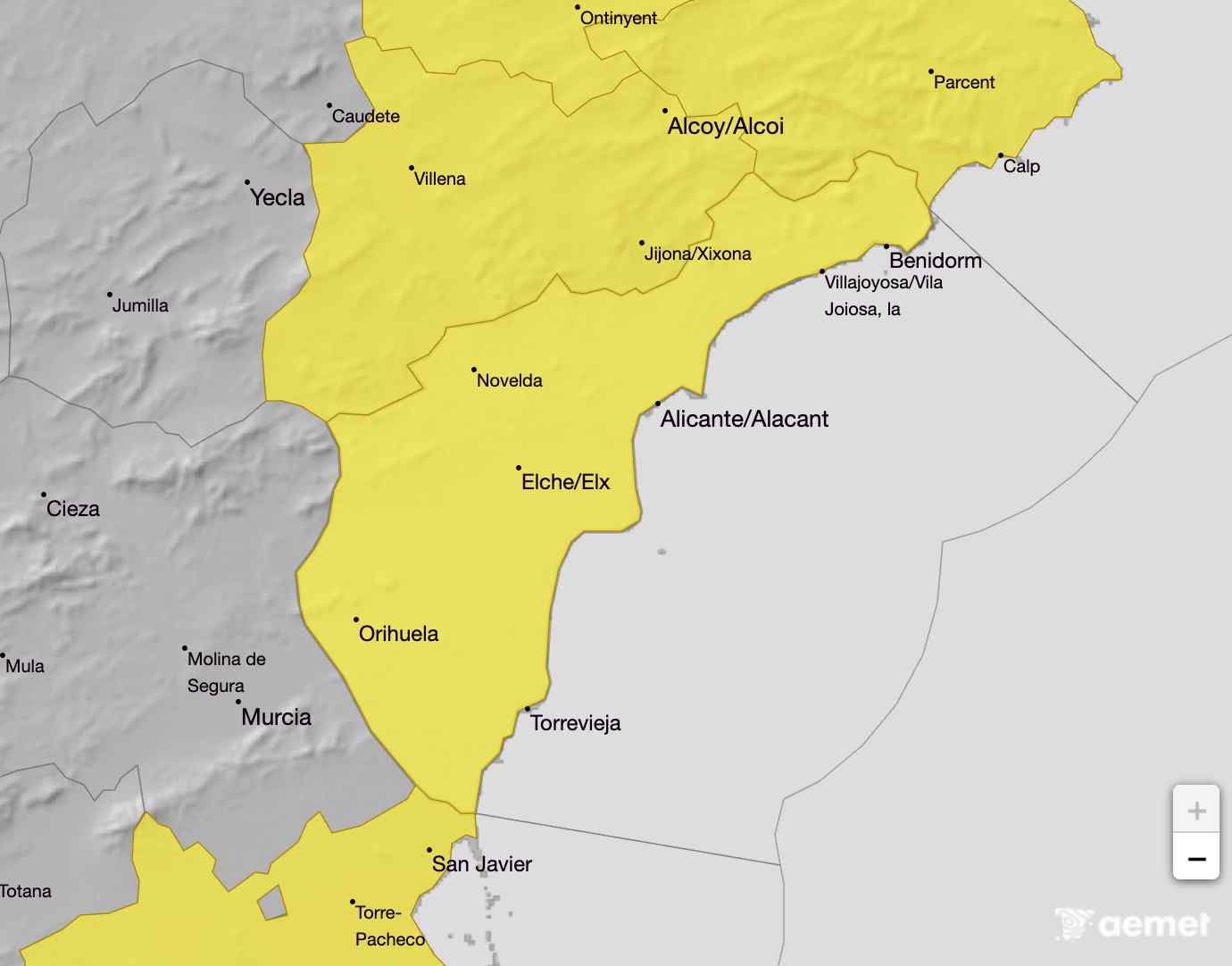 De hecho, la Agencia Estatal de Meteorología marca nivel amarillo para todo este martes, desde las 8:00 hasta las 24:00 horas.