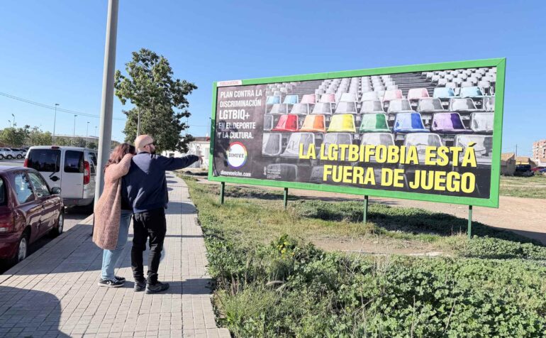 A.S./J.M. La Asociación Deportiva y Cultural LGTBIQ+ Dimove pone en marcha en Elche una campaña publicitaria con siete vallas repartidas por distintos puntos de la ciudad bajo el lema “La LGTBIFobia está fuera de juego”.