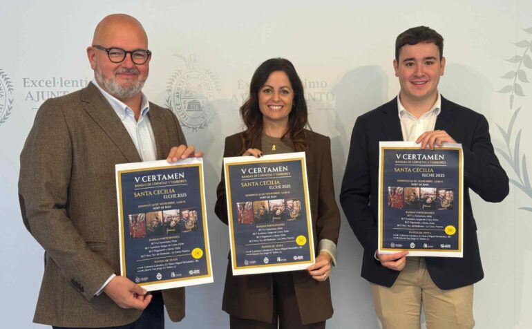 A.S./J.M. La concejala de Festejos, Inma Mora, y el presidente de la Junta Mayor de Cofradías y Hermandades de la Semana Santa de Elche, Joaquín Martínez, han anunciado que próximo sábado 30 de noviembre, a las 12:00 horas, se hará en el Hort de Baix el Certamen de Santa Cecilia de Bandas de Cornetas y Tambores.