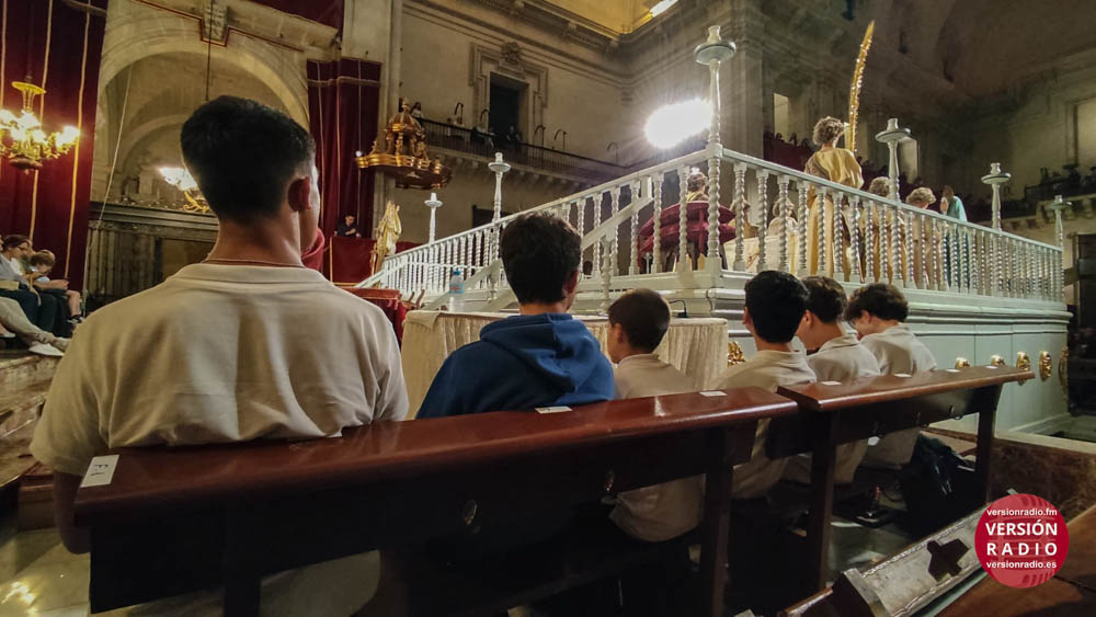 A.S./J.M. Cada día, cuando empieza el Misteri, un grupo de niños sigue con atención toda la representación sentados entre el coro y el presbiterio, en un banco junto al Cadafal.