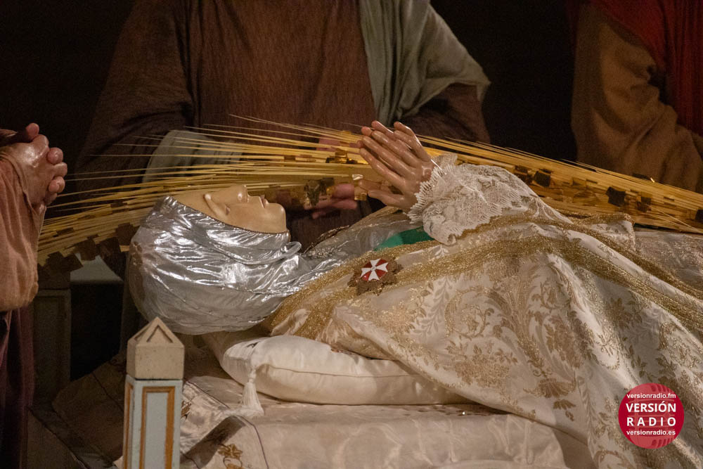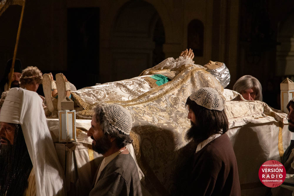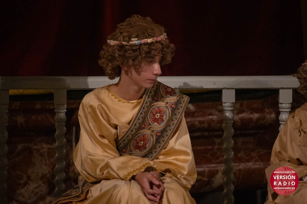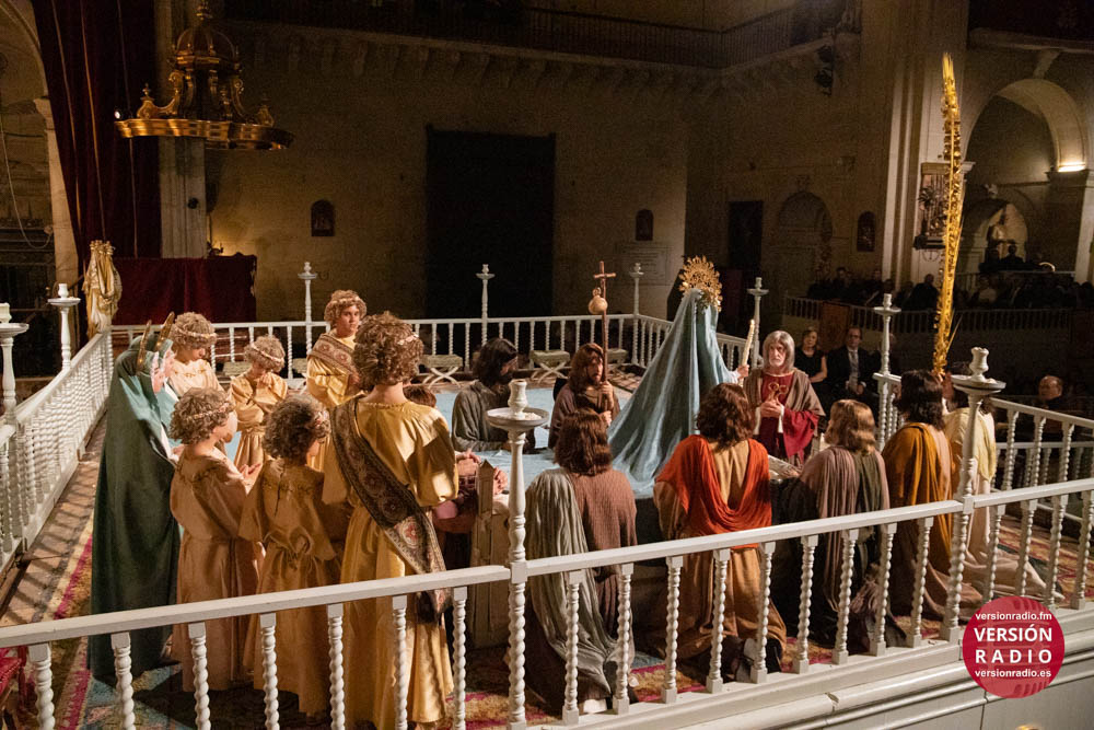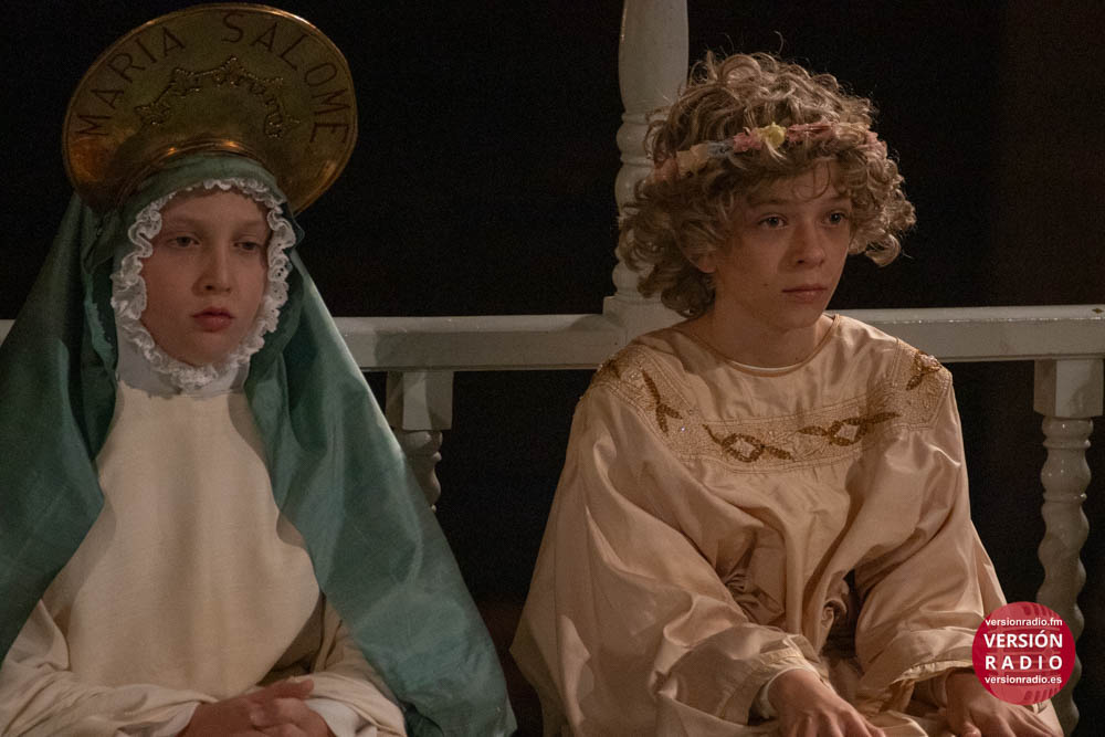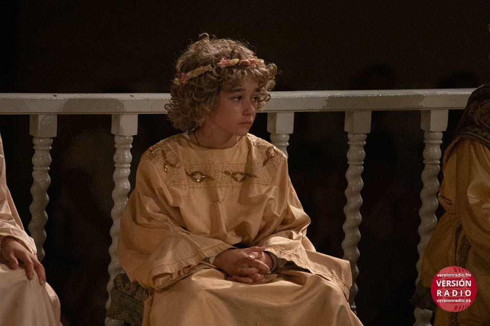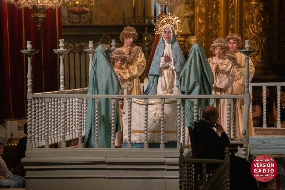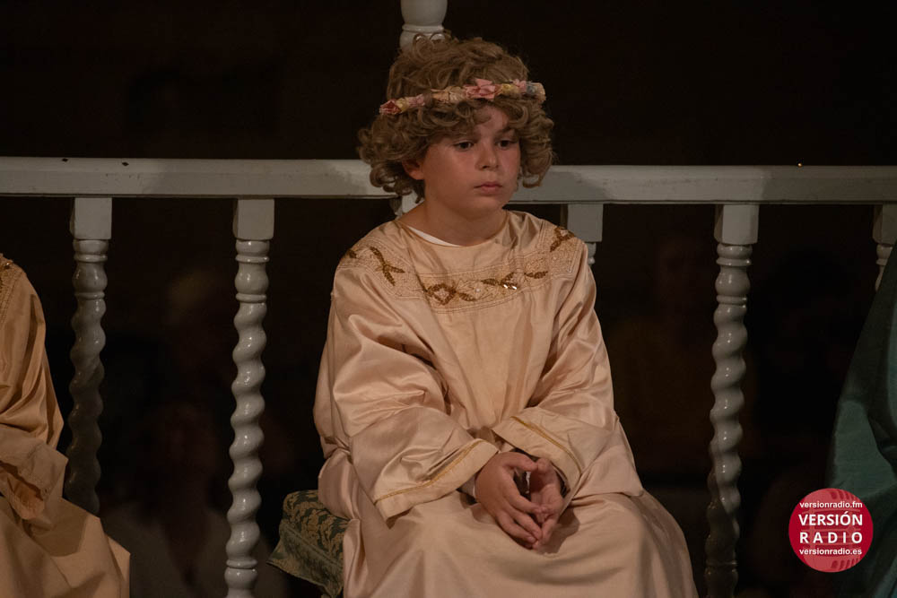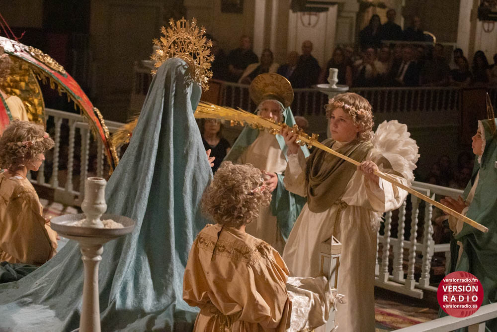 Además, también llevan a cabo una labor de acompañamiento, asistiendo a los pequeños cuando finaliza su intervención en la obra. Por ejemplo, cuando el niño que encarna el papel de María la Mayor, representa la dormición de la Virgen y éste es sustituido por la imagen de la Patrona, recibe la asistencia de sus compañeros y también de los operarios de la tramoya baja.