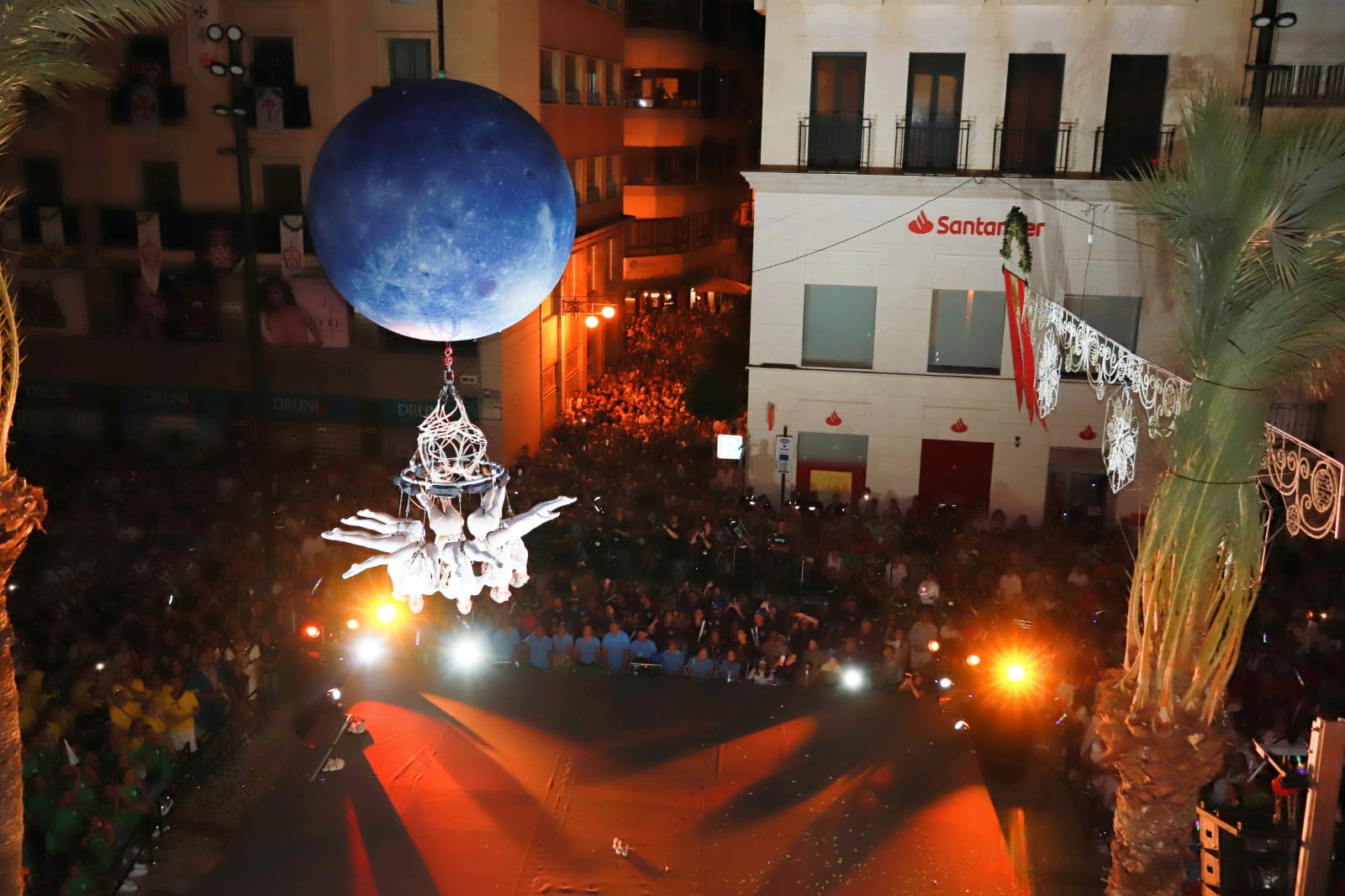 Y después del pregón se ha podido disfrutar de un espectáculo en el que se ha fusionado el ballet aéreo con acrobacias en las que se ha elevado hasta una altura de 35 metros. Una de las participantes en este espectáculo ha sido la concejala del Ayuntamiento de Elche, Saray Huertas.