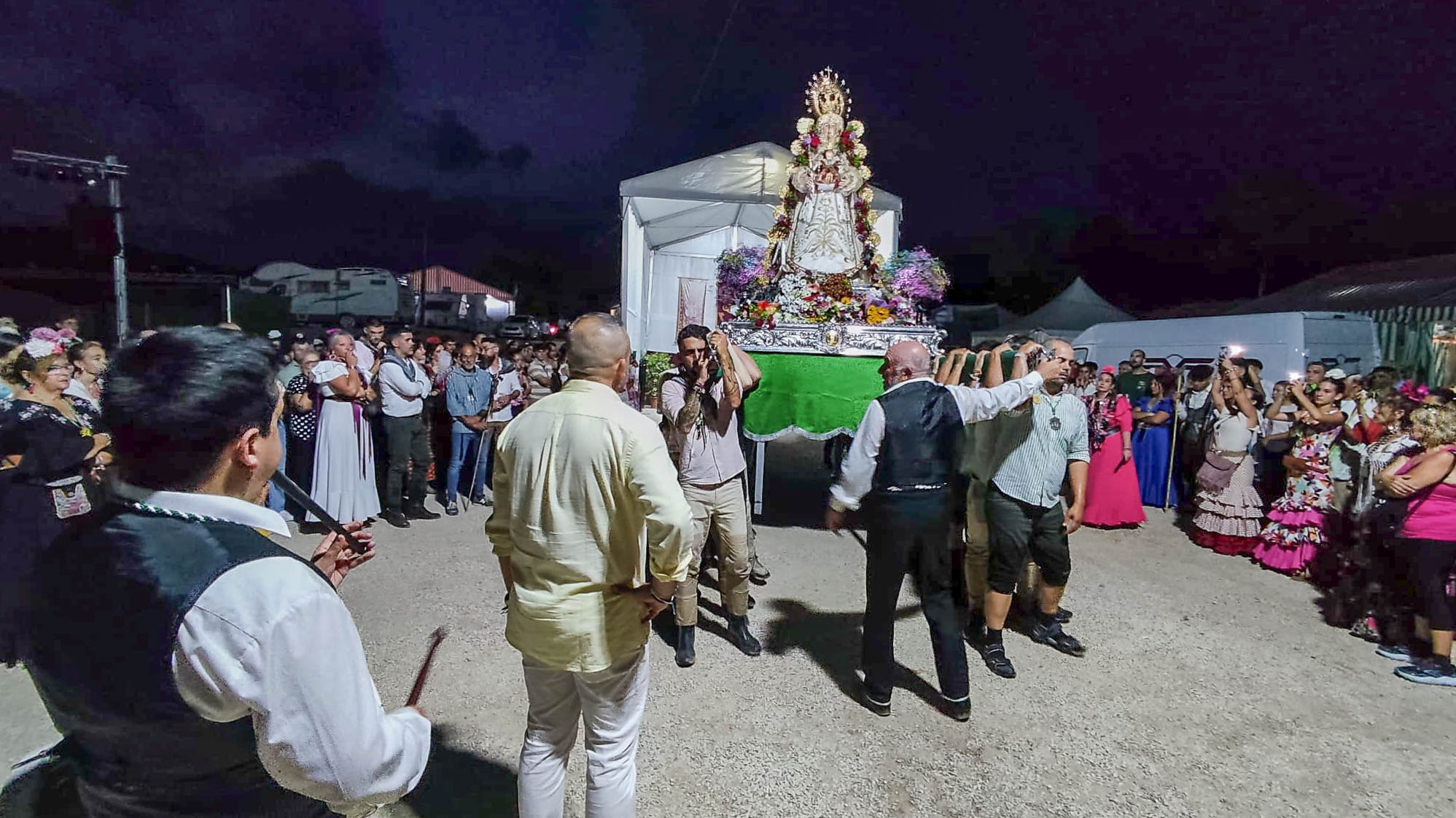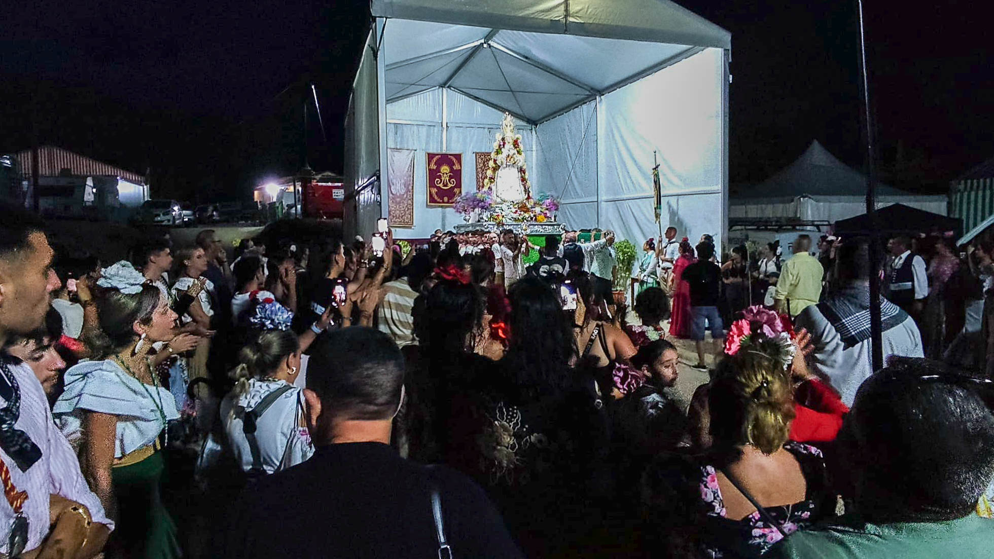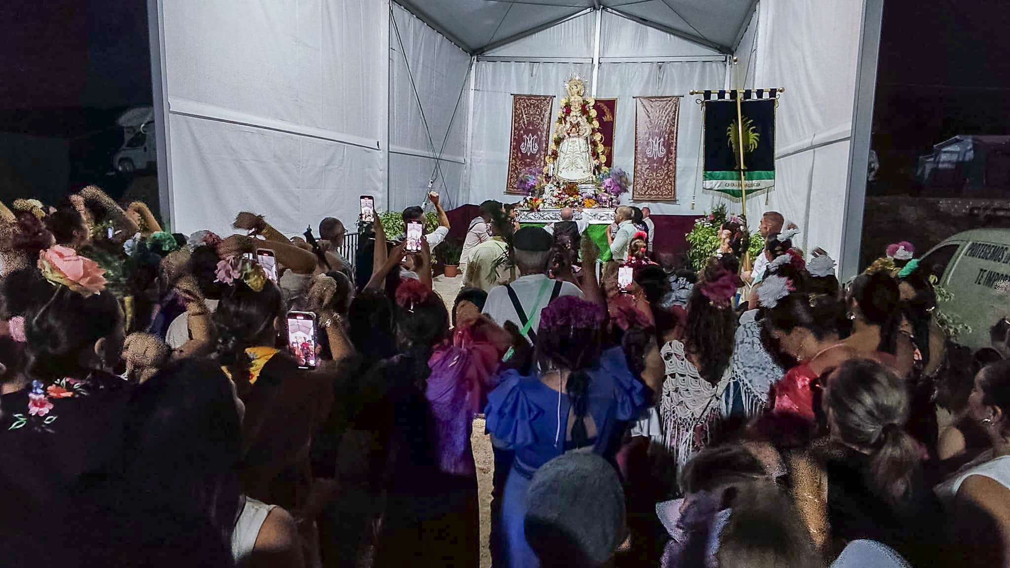La Virgen llegaba al pantano pasadas las 22:00 horas y se pudo escuchar en innumerables ocasiones: “Guapa, guapa, guapa”. Después del largo camino realizado por muchas personas llegaba el momento de reponer fuerzas. También llegaron acompañando a la Virgen, la Andaluza del Año, la concejala de Acción Social, Celia Lastra, y también la diputada autonómica, Lucía Peral.