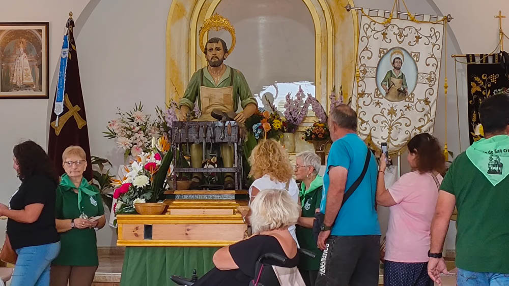 La imagen de San Crispín ha salido de la parroquia Madre de Dios, donde ha permanecido estos días, hasta llegar a su ermita.