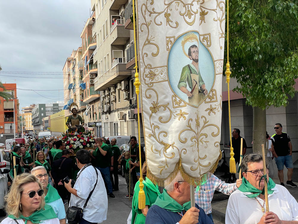 Además, también se han podido ver entre otros, la bandera y estandarte de San Antón, San Pascual Bailón y San Agatángelo, que forman parte de los cuatro puntos cardinales. Estos elementos identificativos de otras tradiciones de Elche participan de forma habitual en cada una de las cuatro celebraciones a lo largo del año. Hoy han arropado con su presencia a San Crispín.