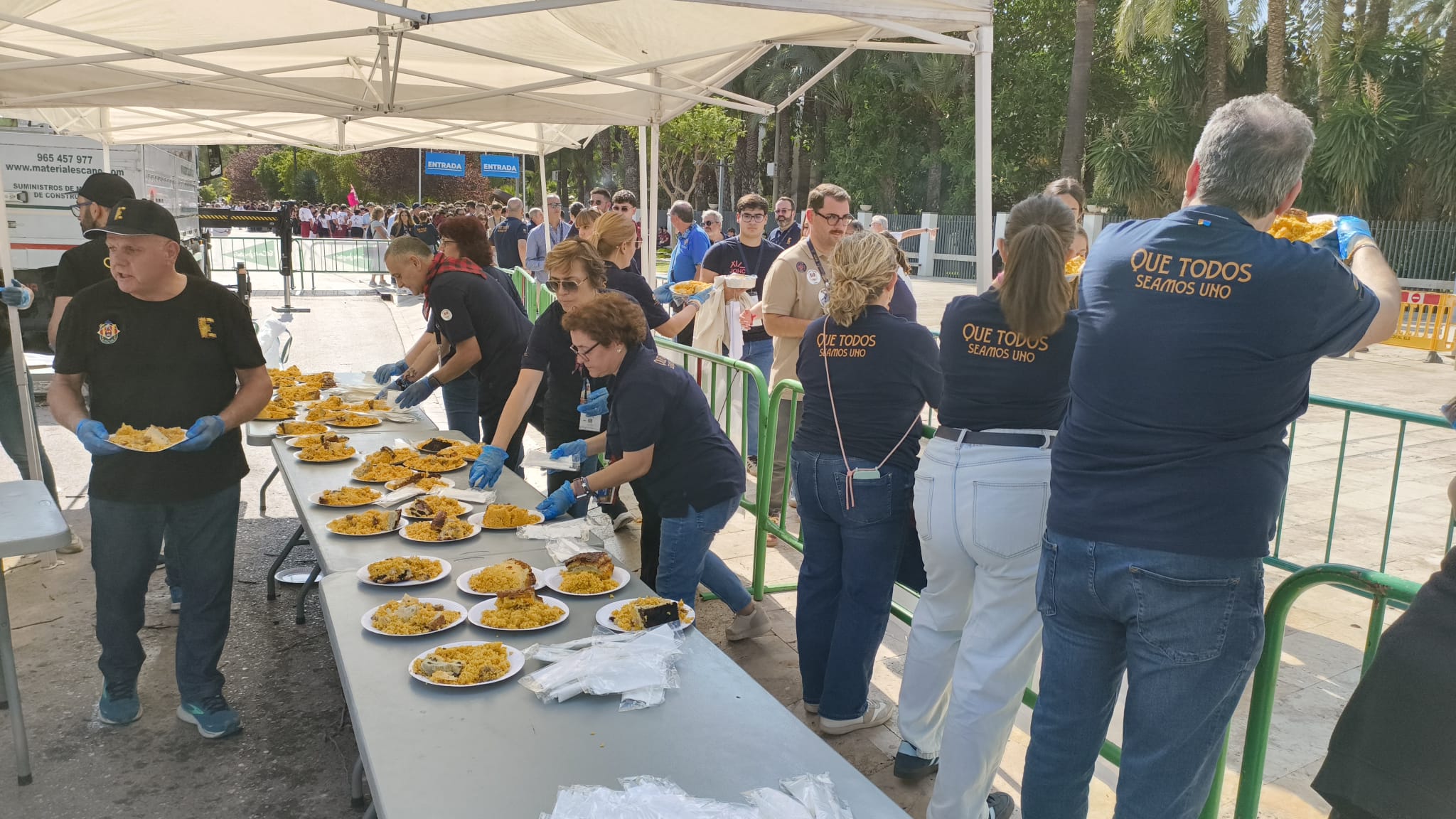 A las 13:50 horas se ha disparado una mascletá desde el puente de Altamira y más tarde todas las personas que están participando en la JOHC han degustado un arroz con costra gigante que se ha preparado en el Paseo de la Estación.
