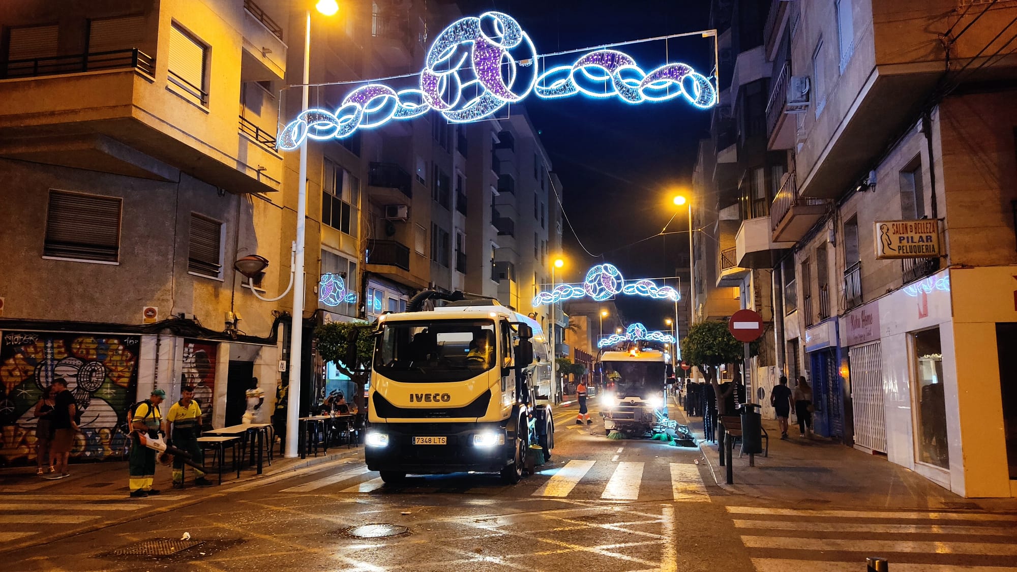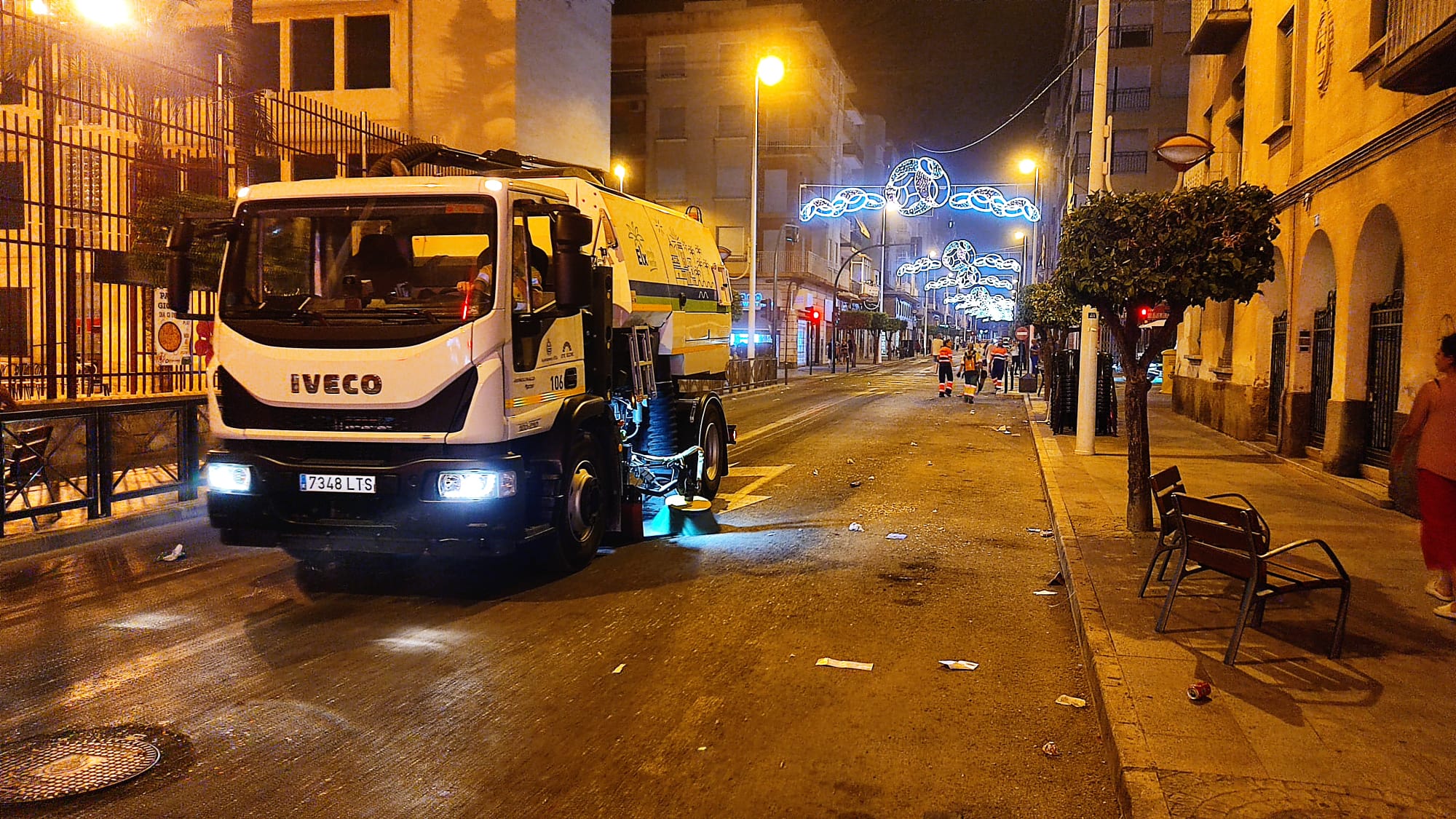 Después de la Entrada Mora, como ocurre en todos los desfiles de las fiestas, los trabajadores de UTE Elche han dejado en perfecto estado el recorrido.