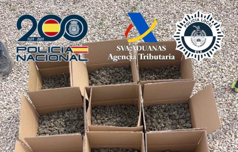 Incautan 126 kilos de cogollos de marihuana en un chalet de Elche