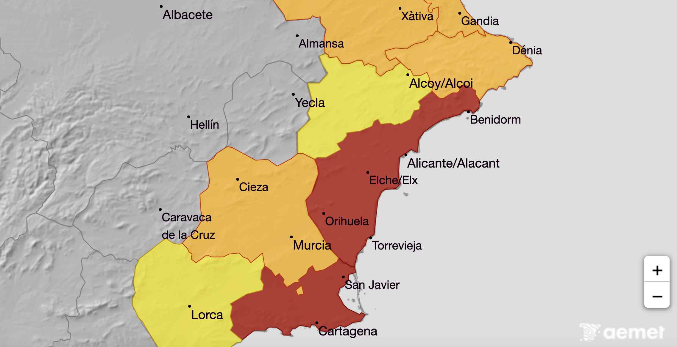 La alerta roja obliga a suspender en Elche prácticamente todo: colegios, la Fireta, mercadillos, el pleno extraordinario y hasta el autobús a las pedanías