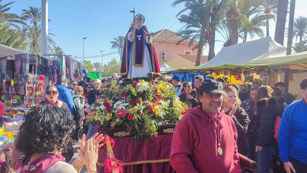 Acompañando al santo, que se ha bailado a lo largo del recorrido en numerosas ocasiones, también ha estado el pregonero de las fiestas de este año, Antonio Tomás Milla.