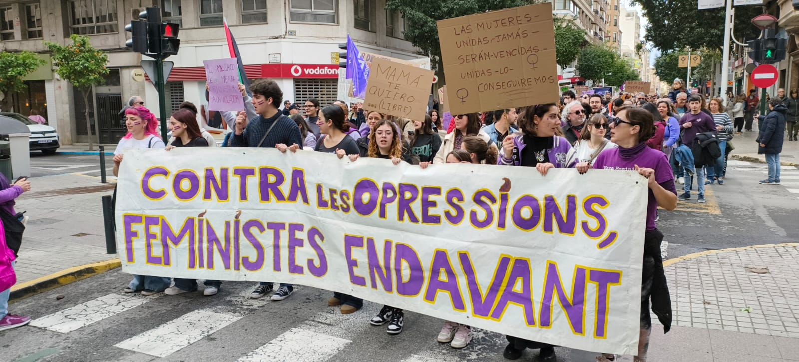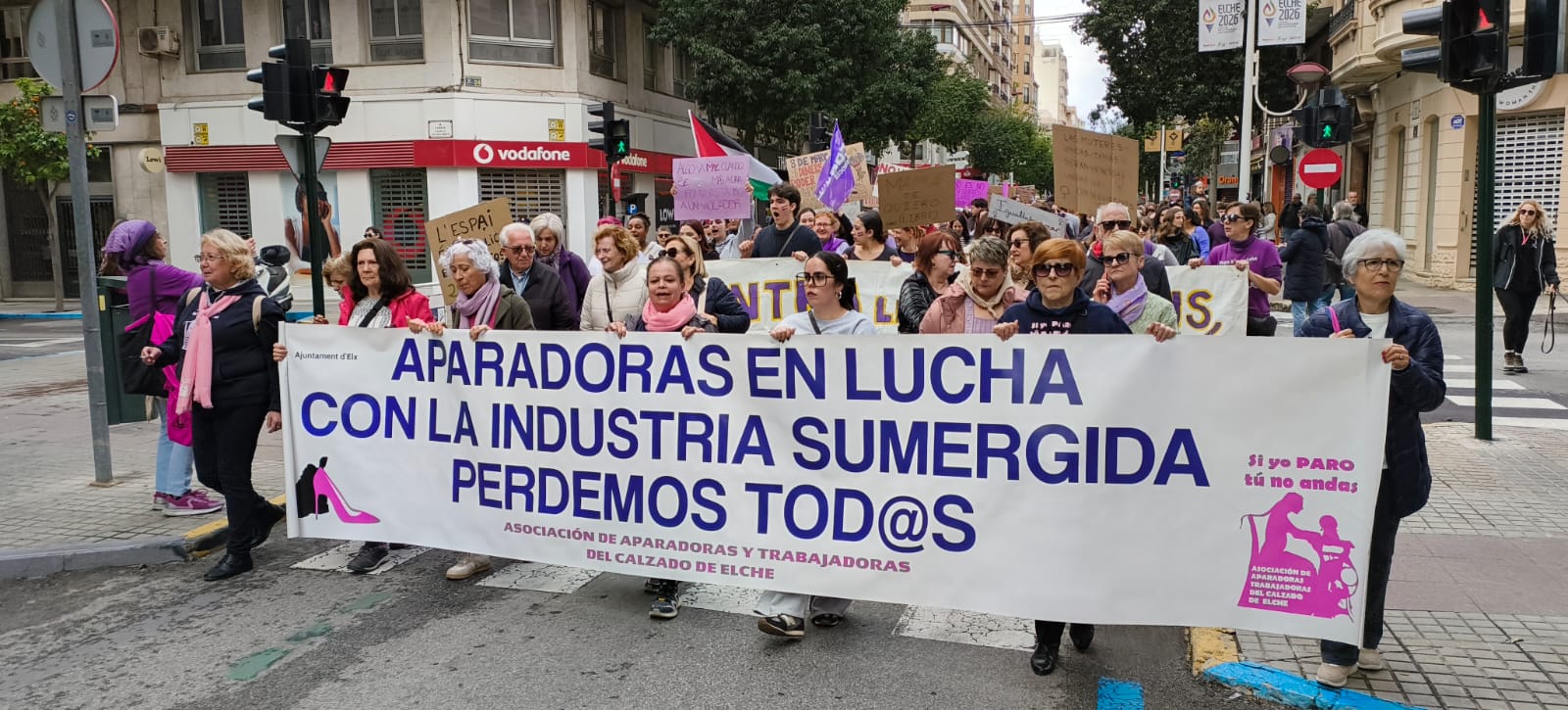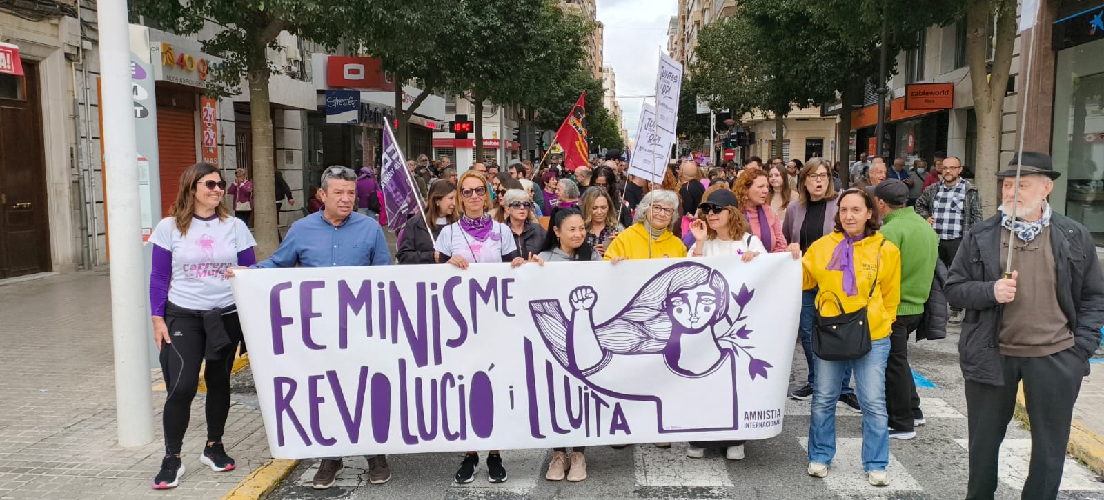 Y también muchas pancartas de diferentes colectivos, como de la Asociación de Mujeres Vecinales de Elche, de CCOO y UGT, del PCPM, de Elche Acoge, de la Plataforma por la Reversión del Hospital del Vinalopó, de Amnistía Internacional, del PSOE, de Compromís, del Instituto de Carrús o de la Asociación de Aparadoras y Trabajadoras del Calzado de Elche, entre otros.