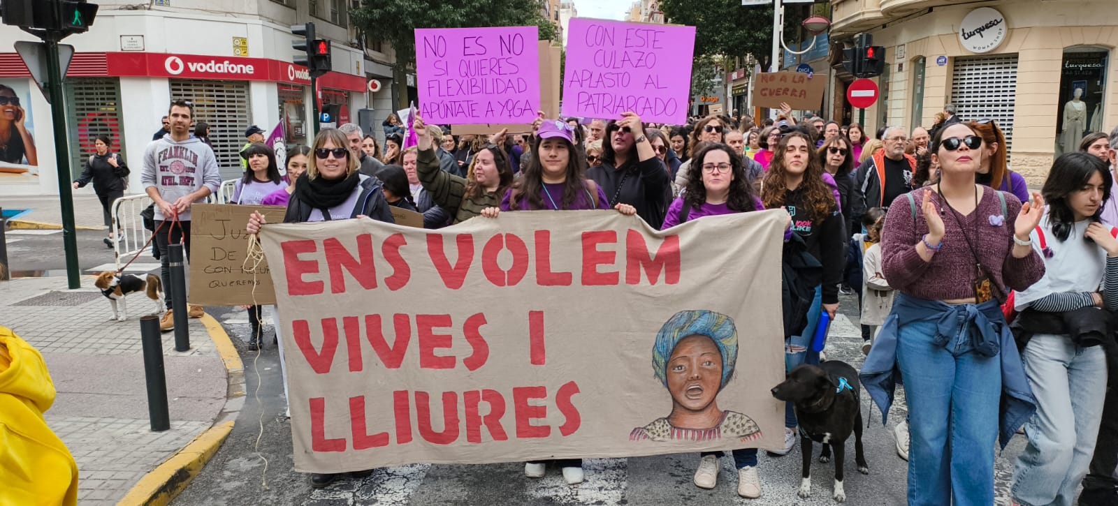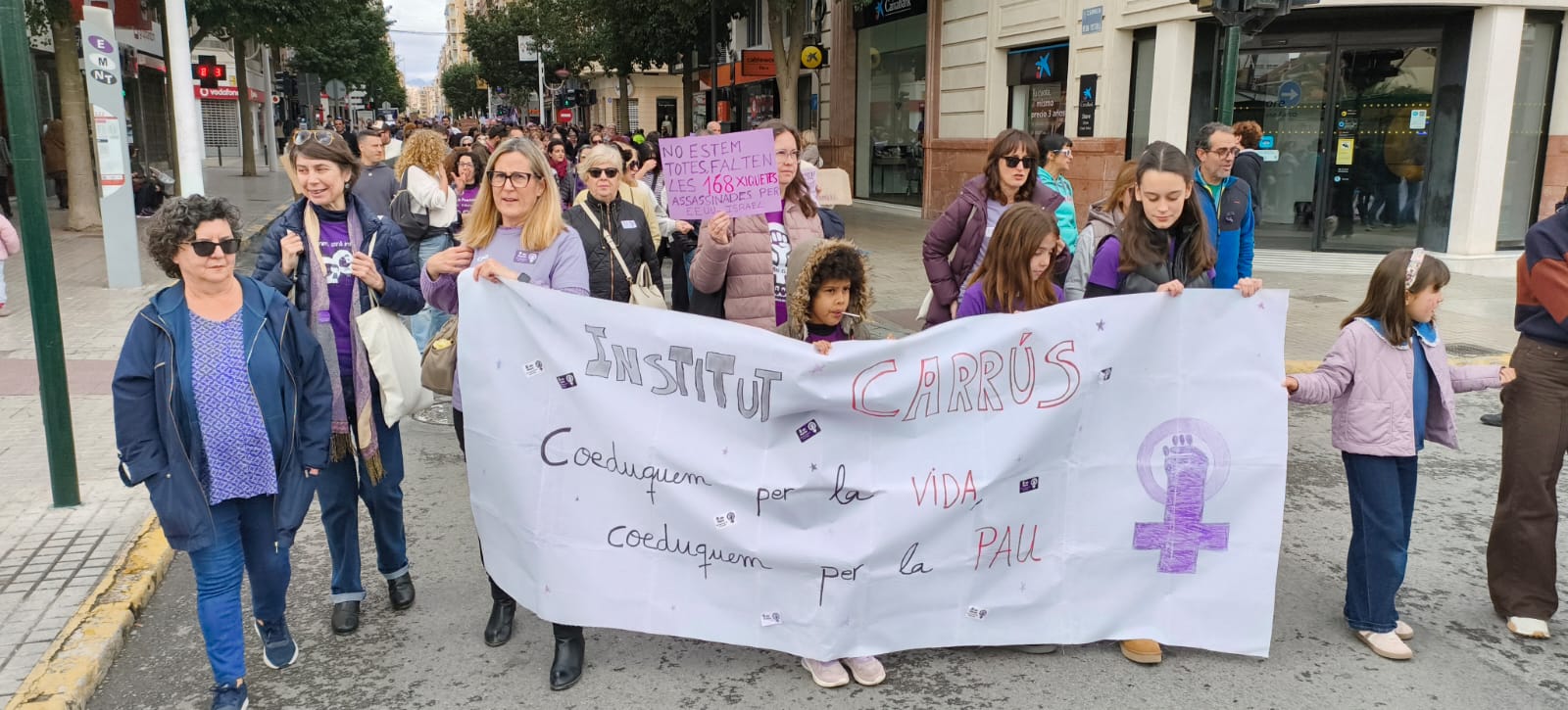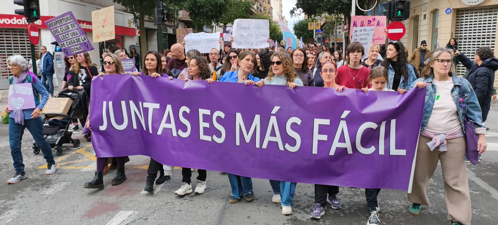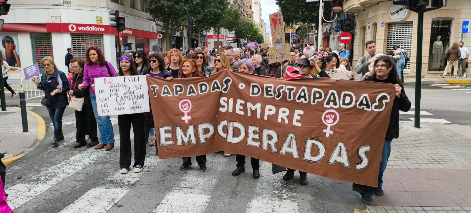 Y también muchas pancartas de diferentes colectivos, como de la Asociación de Mujeres Vecinales de Elche, de CCOO y UGT, del PCPM, de Elche Acoge, de la Plataforma por la Reversión del Hospital del Vinalopó, de Amnistía Internacional, del PSOE, de Compromís, del Instituto de Carrús o de la Asociación de Aparadoras y Trabajadoras del Calzado de Elche, entre otros.