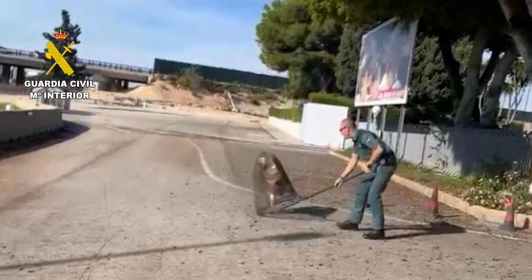 Con el apoyo del personal del Centro de Recuperación de Fauna Silvestre de Santa Faz, los agentes del SEPRONA realizaron una maniobra de rescate segura y controlada, logrando recuperar al ave y trasladarla al centro especializado, donde recibe los cuidados necesarios antes de su futura reintroducción al medio natural al que pertenece.