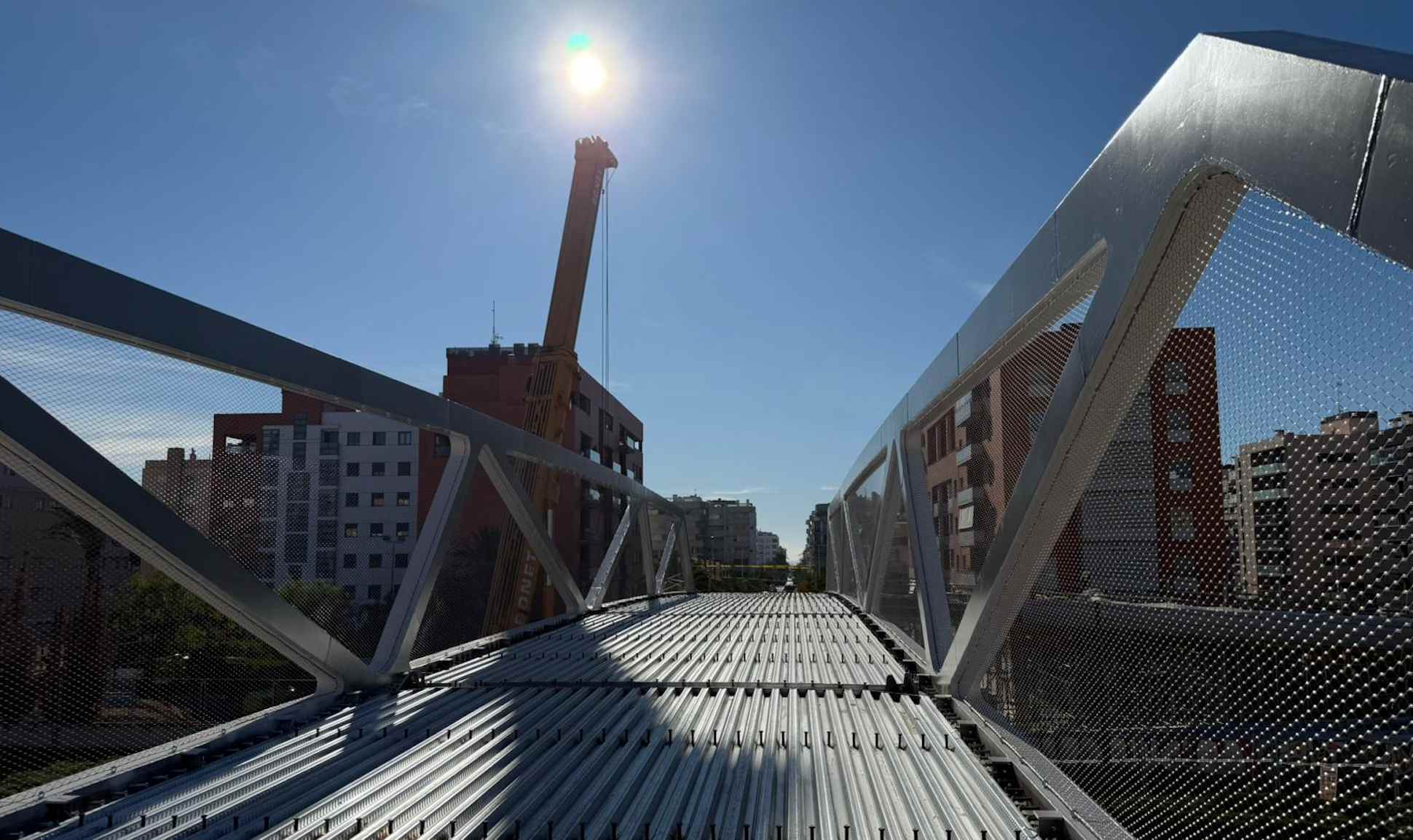 La pasarela está formada por más de 2.000 piezas que se han fabricado por bloques en Orihuela y que se han transportado a Elche para su ensamblado y montaje definitivo.