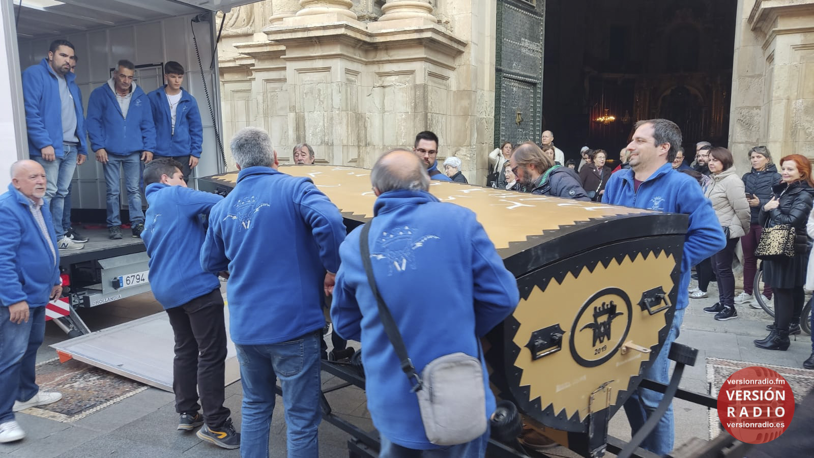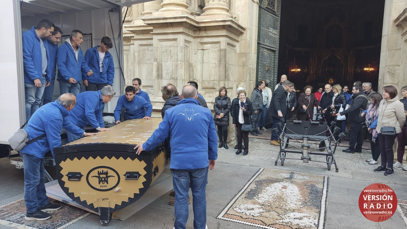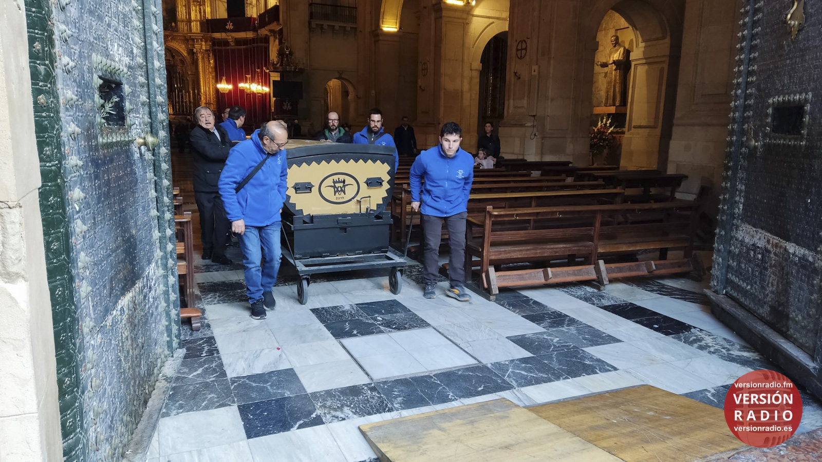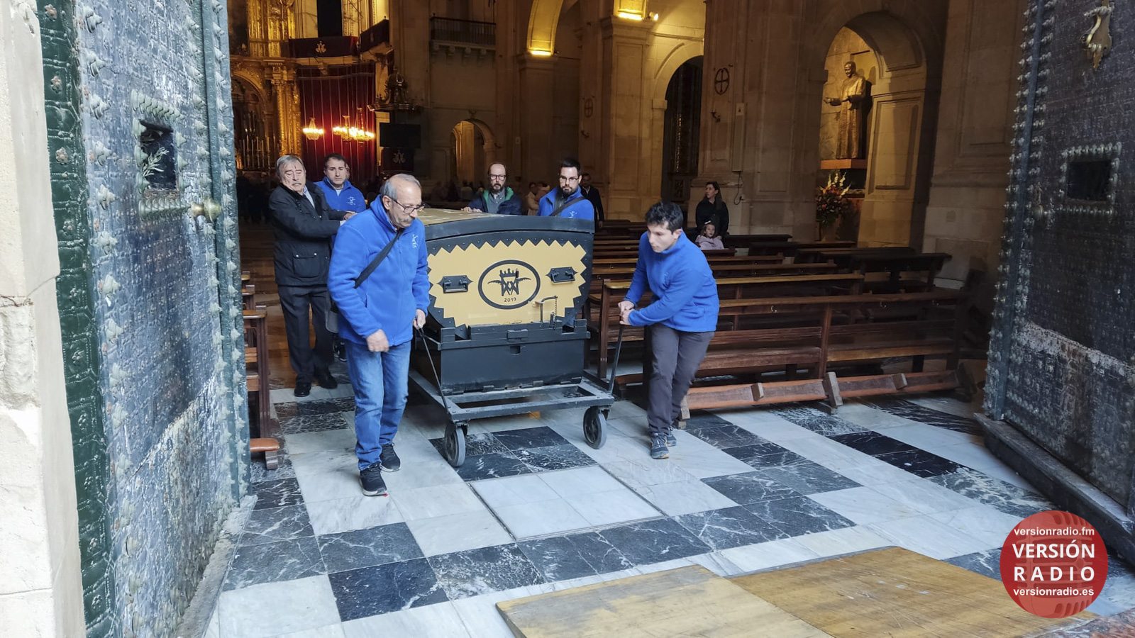 En la sacristía del templo se ha dispuesto todo lo necesario para que las camareras de la Virgen y miembros de la Venida se hayan encargado de colocar la imagen en el arca, que previamente había llegado a Santa María. Los sistemas de seguridad se han preparado para que la imagen no se mueva en el interior del arca.