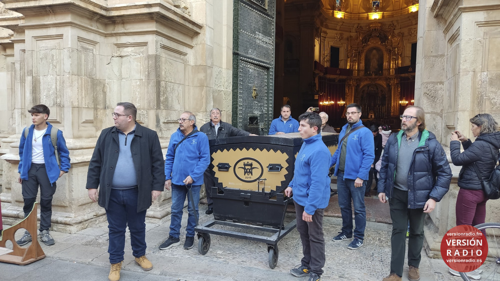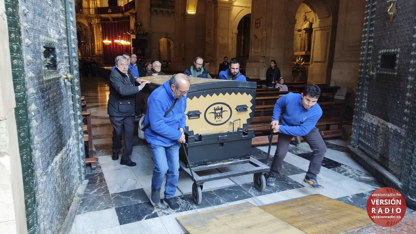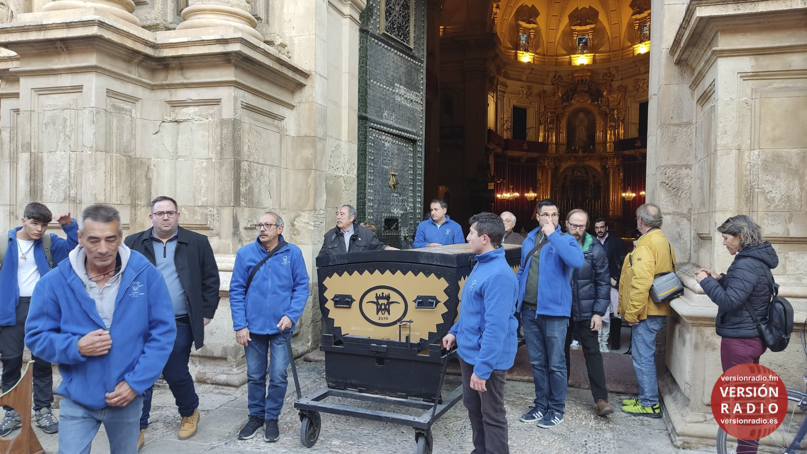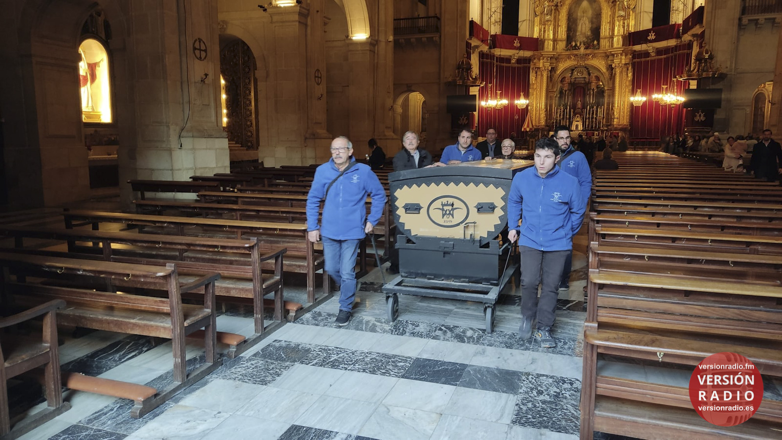 En la sacristía del templo se ha dispuesto todo lo necesario para que las camareras de la Virgen y miembros de la Venida se hayan encargado de colocar la imagen en el arca, que previamente había llegado a Santa María. Los sistemas de seguridad se han preparado para que la imagen no se mueva en el interior del arca.