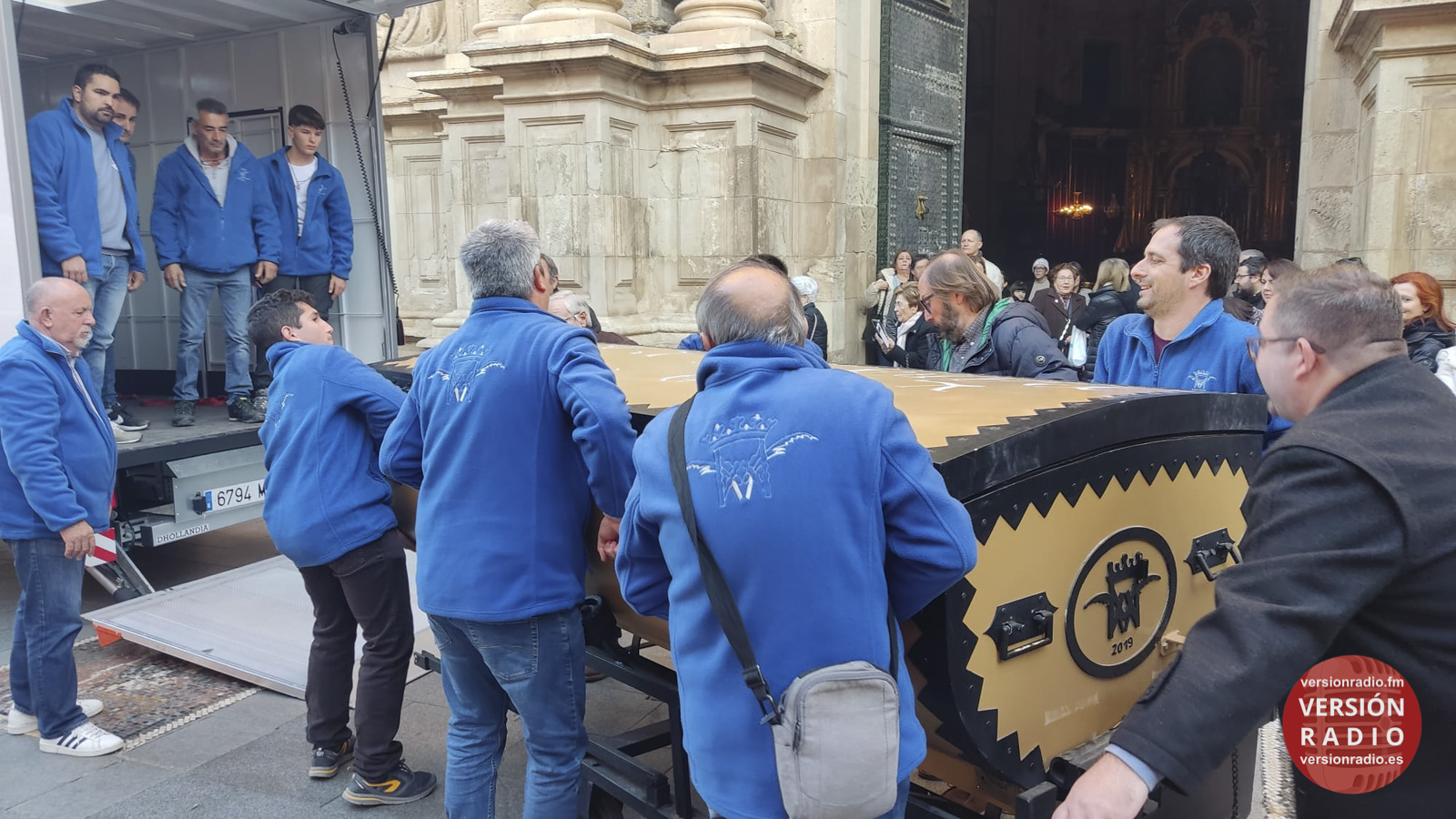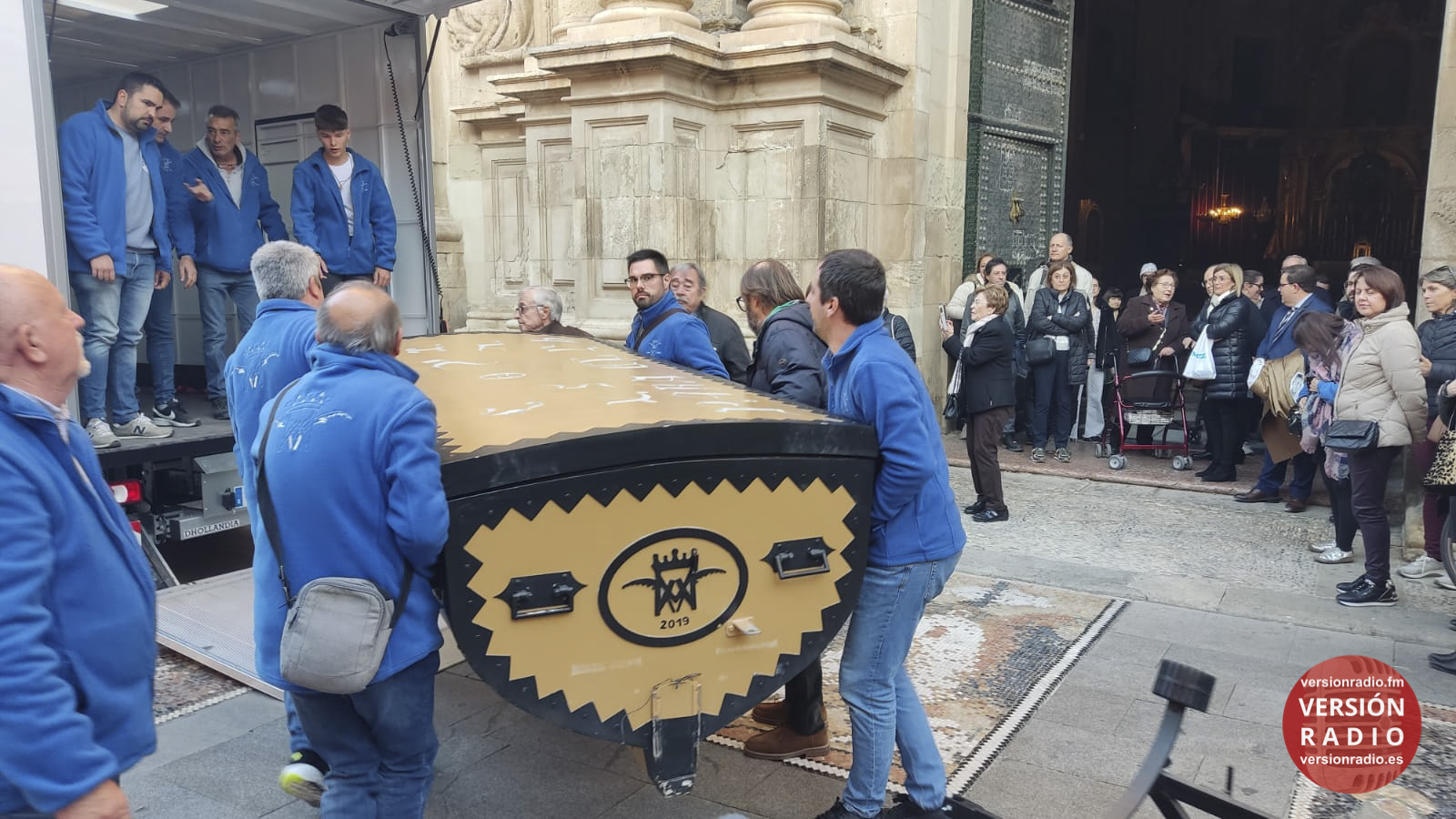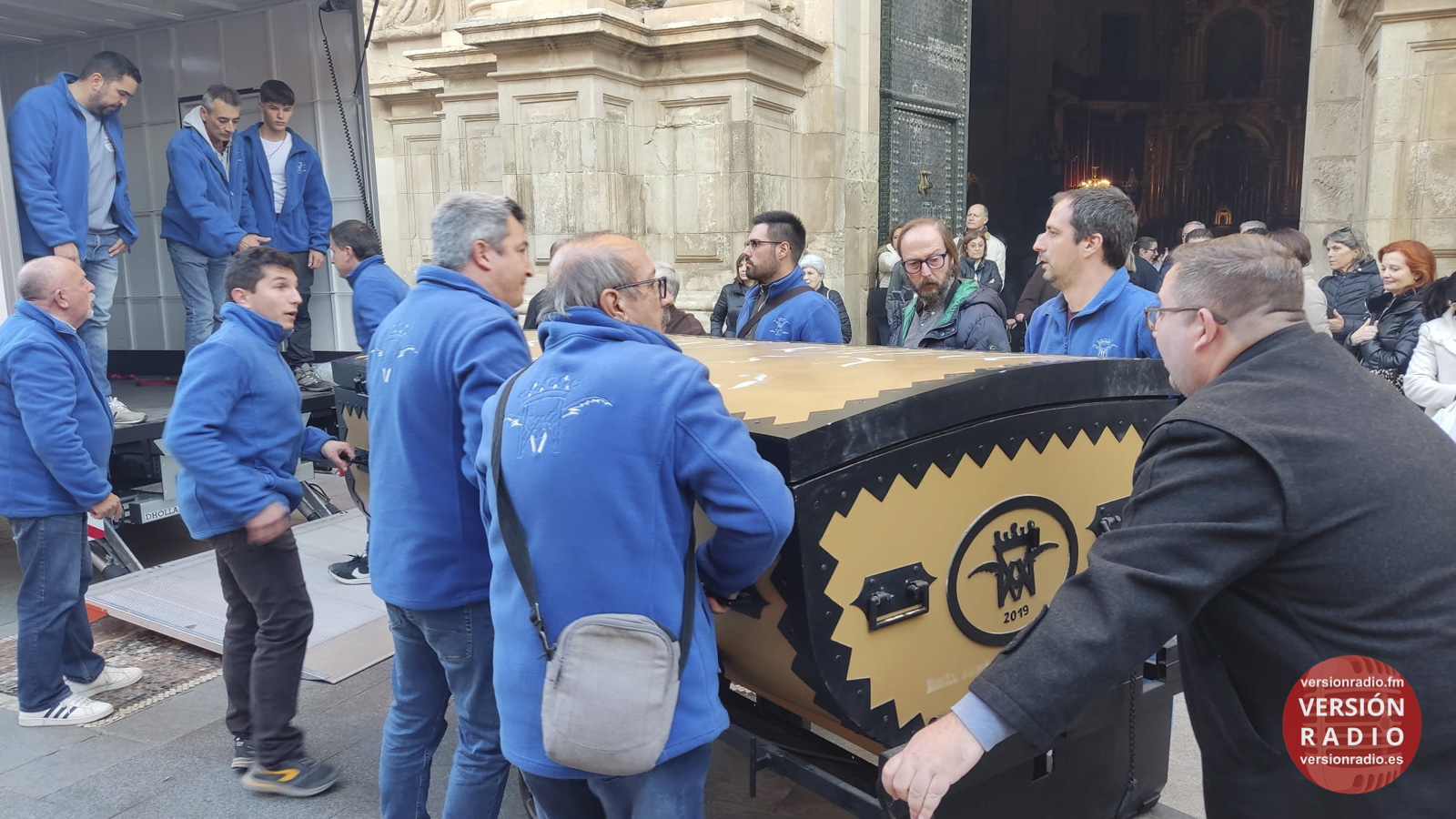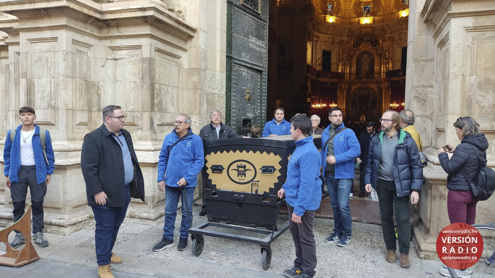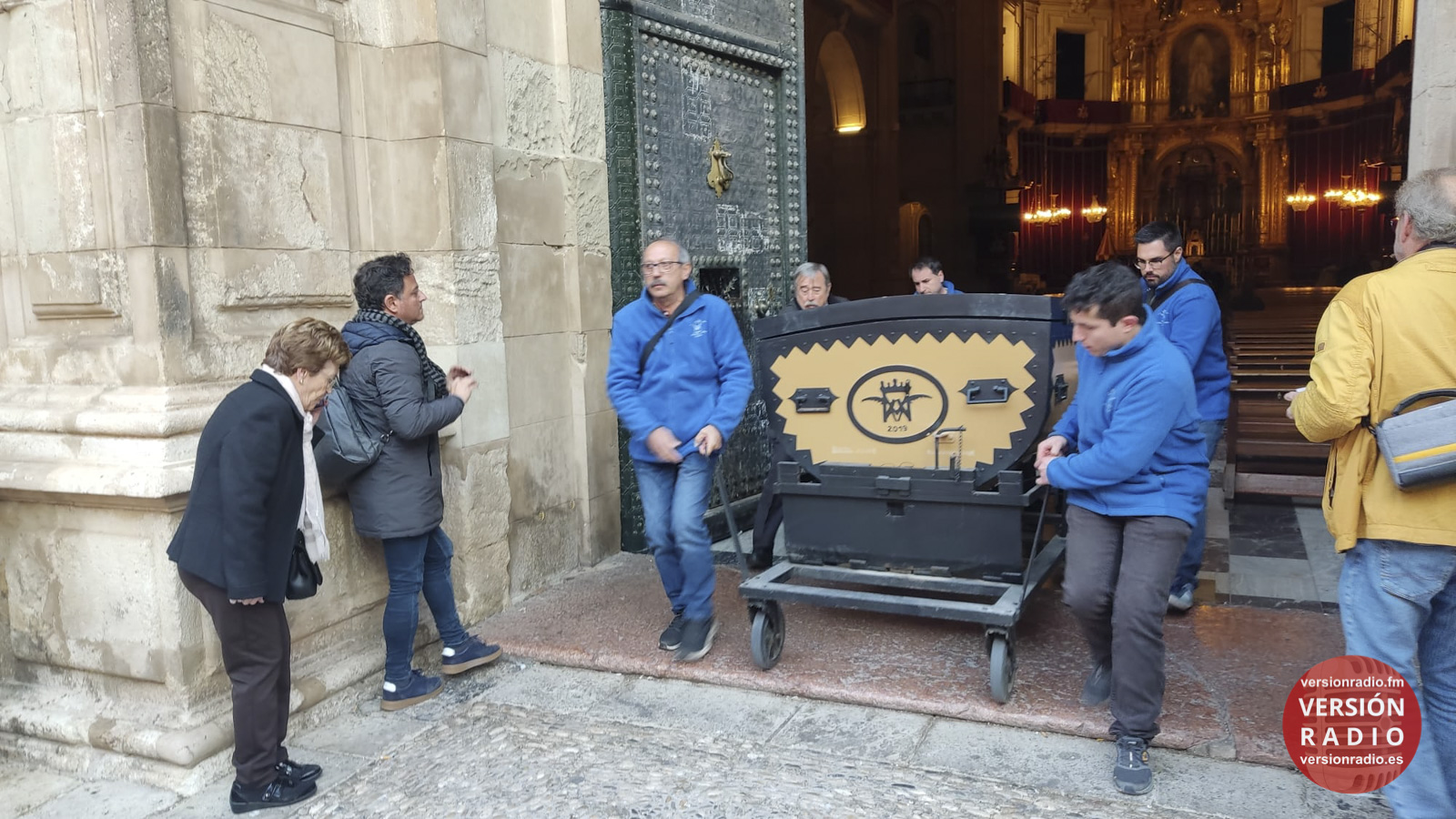 En la sacristía del templo se ha dispuesto todo lo necesario para que las camareras de la Virgen y miembros de la Venida se hayan encargado de colocar la imagen en el arca, que previamente había llegado a Santa María. Los sistemas de seguridad se han preparado para que la imagen no se mueva en el interior del arca.