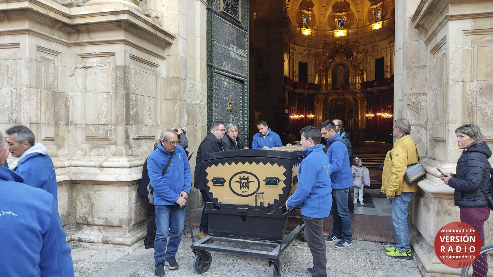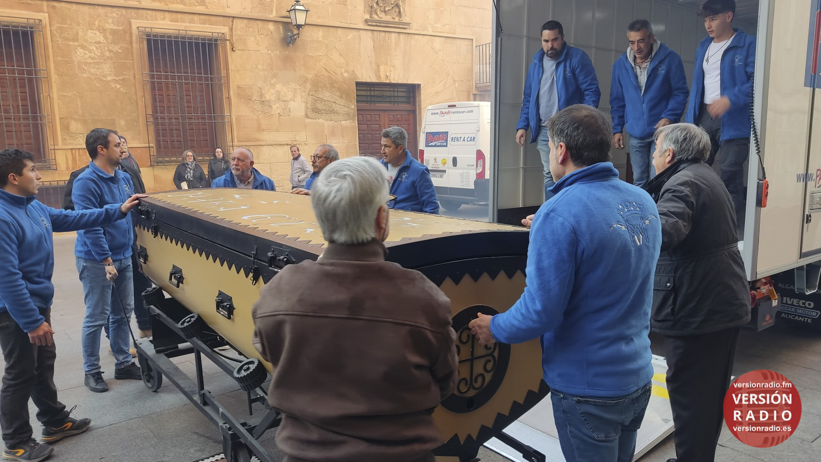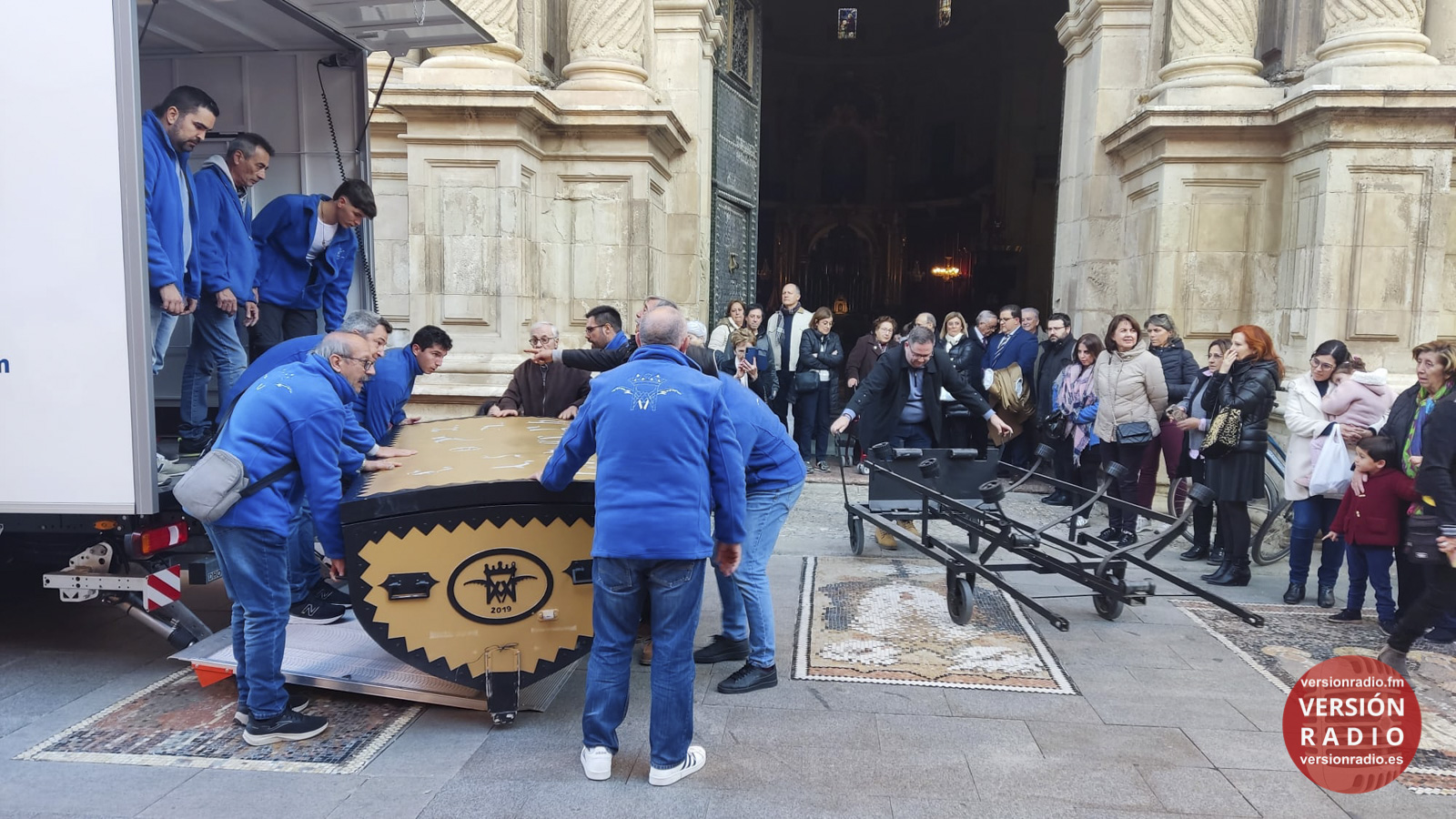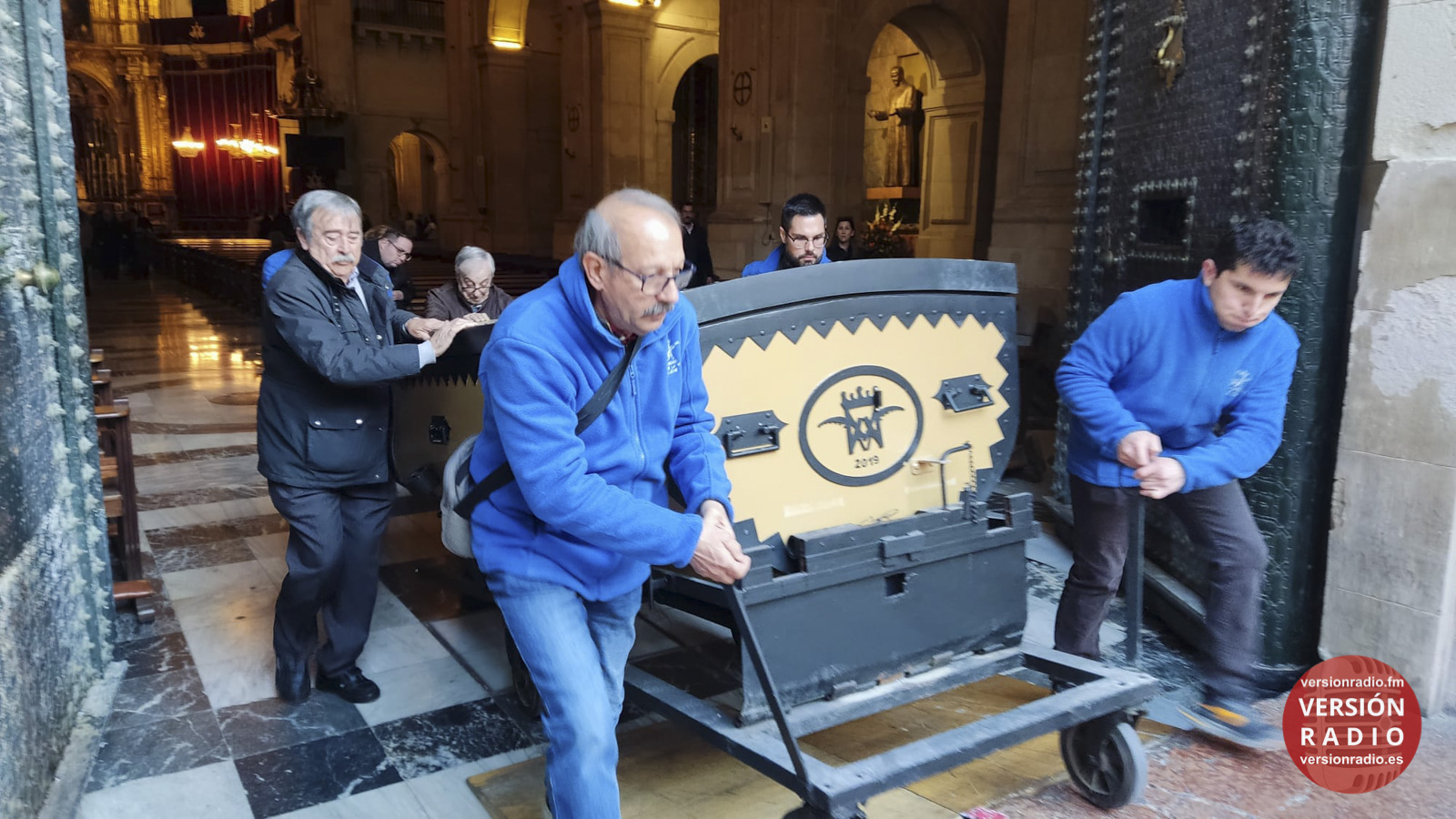En la sacristía del templo se ha dispuesto todo lo necesario para que las camareras de la Virgen y miembros de la Venida se hayan encargado de colocar la imagen en el arca, que previamente había llegado a Santa María. Los sistemas de seguridad se han preparado para que la imagen no se mueva en el interior del arca.