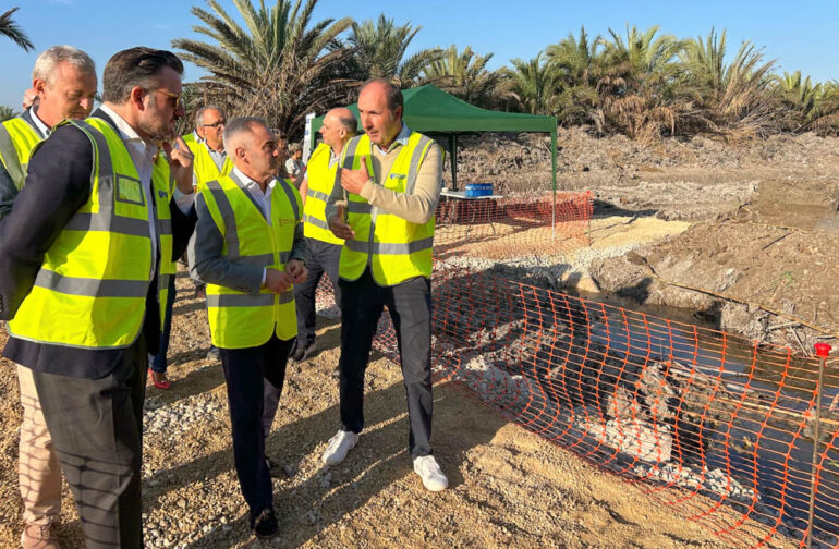 A.S./J.M. El alcalde de Elche, Pablo Ruz; el conseller de Agricultura y Agua, Miguel Barrachina; y el presidente de Riegos de Levante, Roque Bru, han visitado las obras de mejora del Canal de Riegos de Levante a su paso por el Parque Natural de El Hondo, en las que la Generalitat Valenciana ha invertido 2’1 millones de euros.