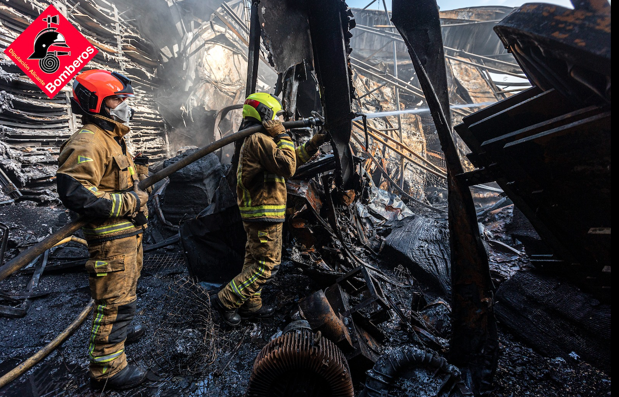 Intensas horas de trabajo las que han tenido desde ayer tarde los bomberos por un incendio originado en la empresa Cáster, en Elche Parque Empresarial.