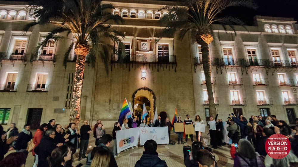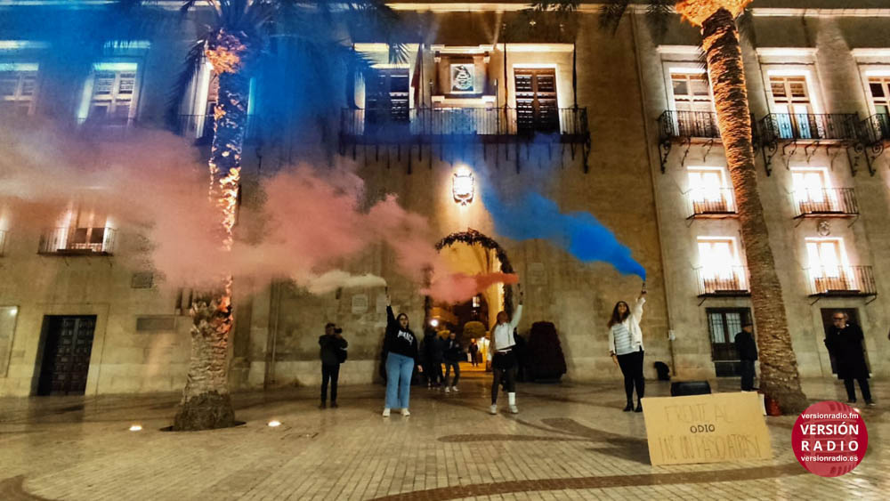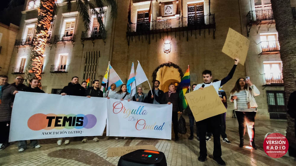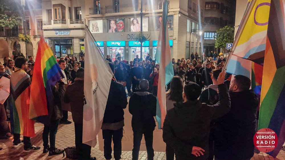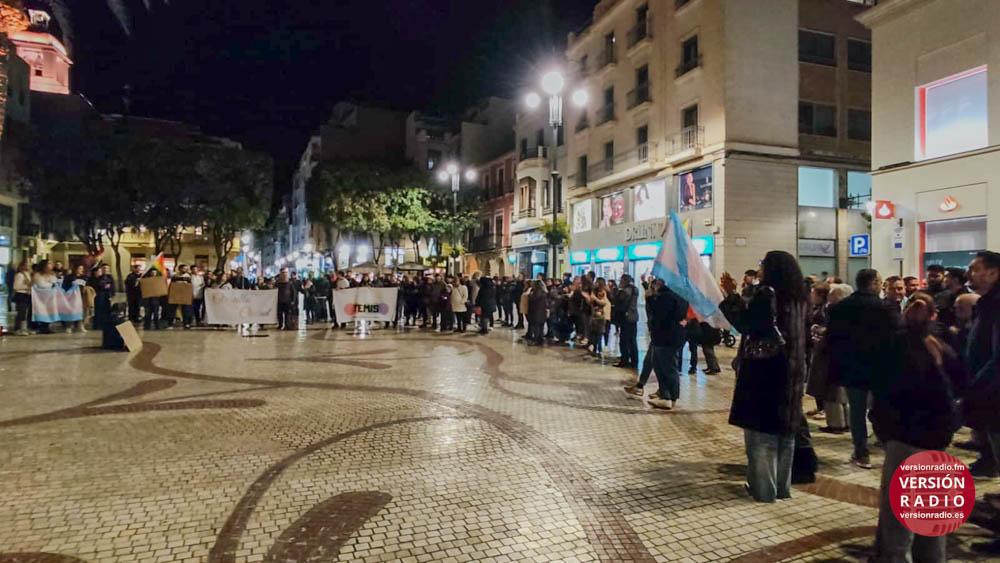 La concentración estaba convocada para pedir la dimisión de la portavoz de VOX en el Ayuntamiento de Elche, Aurora Rodil, por sus declaraciones tránsfobas.