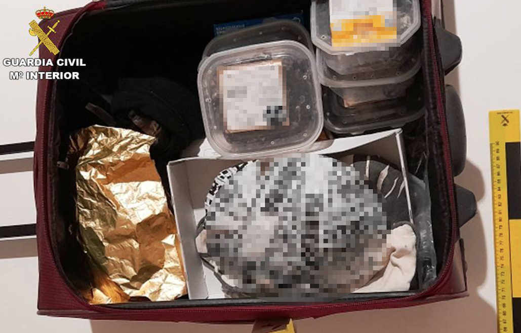 En una de las inspecciones que realiza la Guardia Civil en los aeropuertos al equipaje de mano mediante el escáner de Rayos X, el pasado 11 de mayo, en los filtros de seguridad del área de salidas del aeropuerto Alicante-Elche, los agentes detectaron una maleta con un contenido sospechoso. El pasajero iba a embarcar en un avión con destino a Dinamarca.