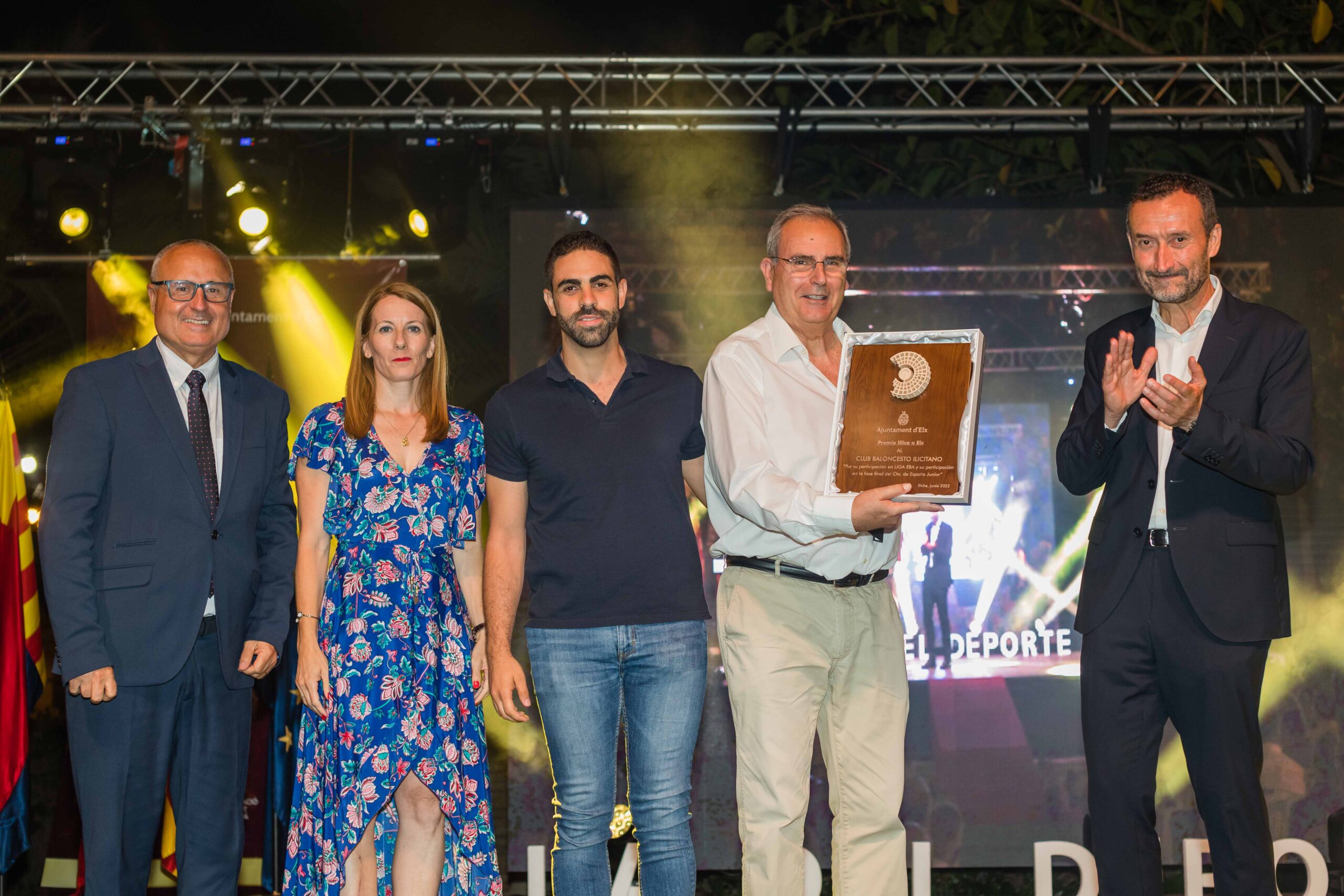 El Premio «De Illice a Elx» que «recoge algún hecho histórico que por su especial relevancia haya significado la mejora del deporte en Elche» fue para el Club Baloncesto Ilicitano. Lo recogió el presidente, Carlos Guerrero.