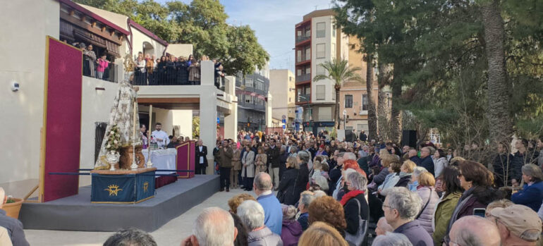 A.S./J.M. Después del aplazamiento que se tuvo que hacer el pasado fin de semana por culpa de la lluvia este domingo se ha podido hacer todo lo previsto: romería, inauguración de la escultura de la Virgen de la Asunción (financiada por Aigües d’Elx) e inauguración de la Casa de la Virgen.
