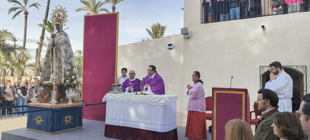 A la llegada de la imagen de la Virgen de la Asunción se ha hecho una misa de campaña, con la participación de la Capella del Misteri d’Elx.