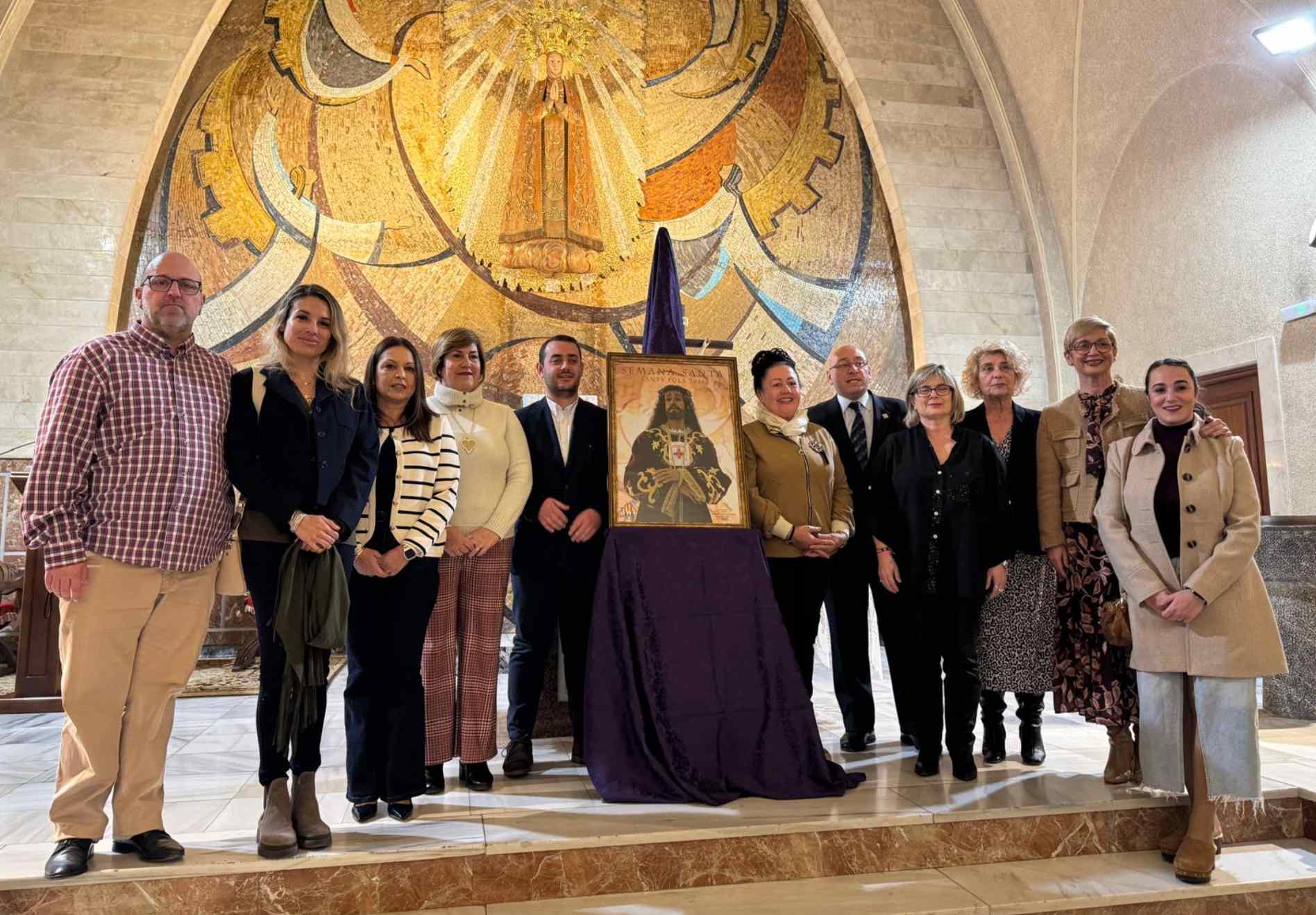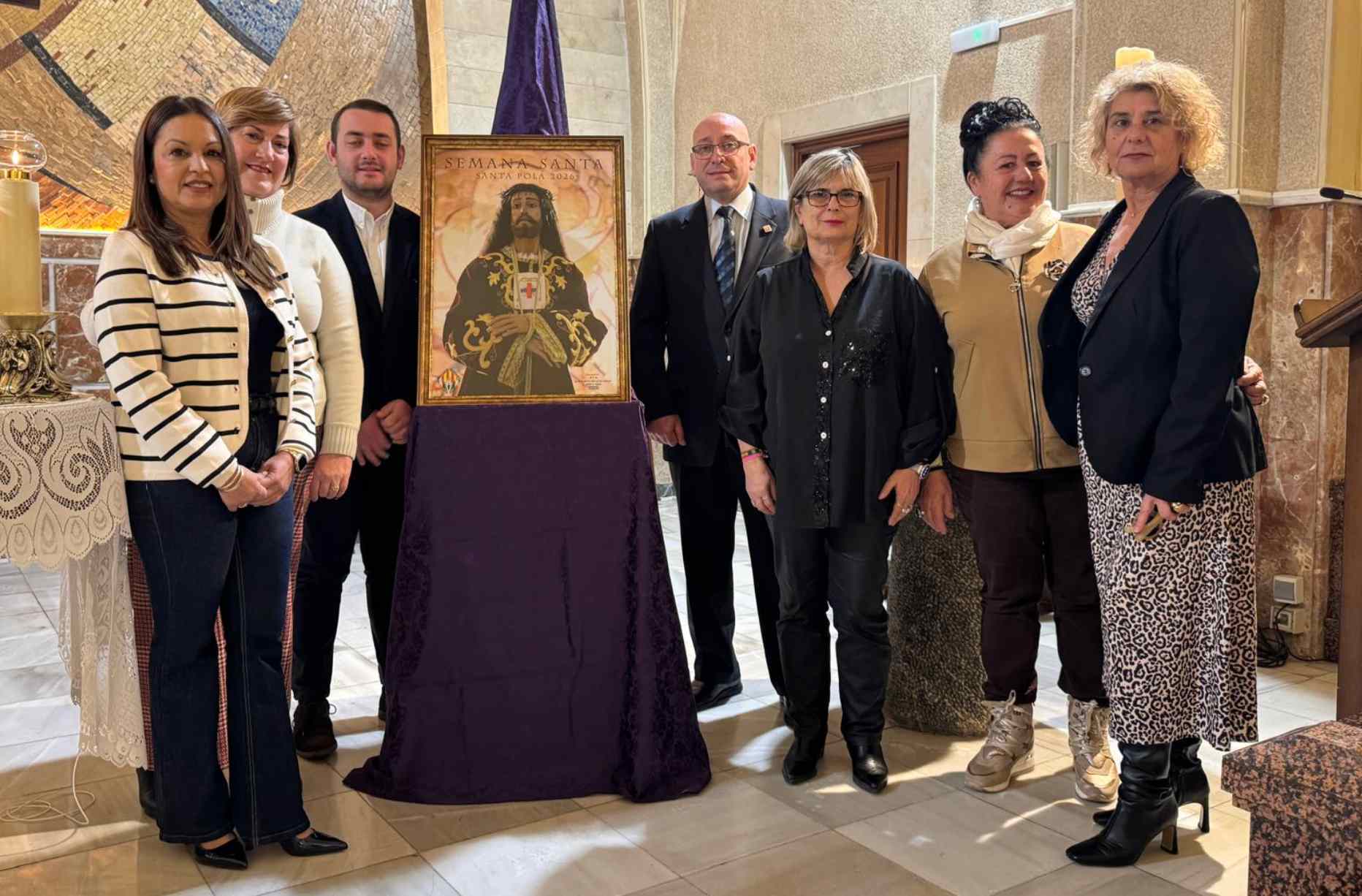 El cartel ha sido descubierto por la alcaldesa de Santa Pola, Loreto Serrano, y por la presidenta de la Cofradía de Jesús de Medinaceli, Antonia Chacopino Baile, en presencia del presidente de la Junta Mayor, Óscar Baile.